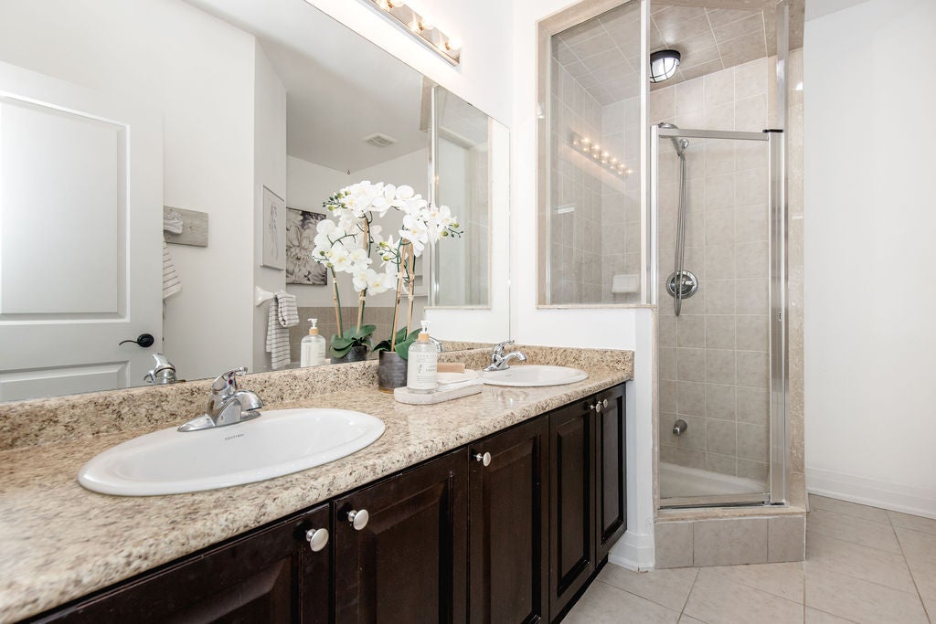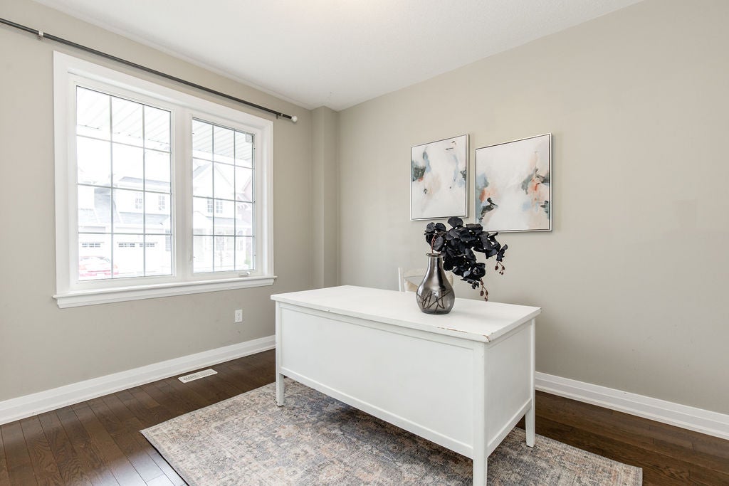 enclosed shower. You'll also find a dedicated office or flex space on the main level - ideal for remote work or a hobby room - as well as direct