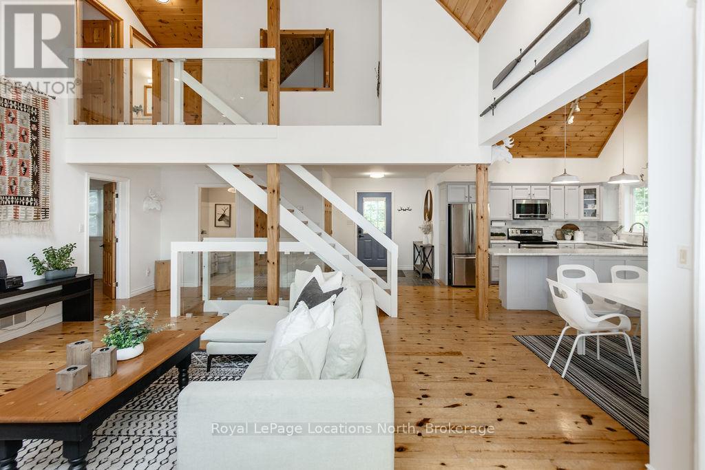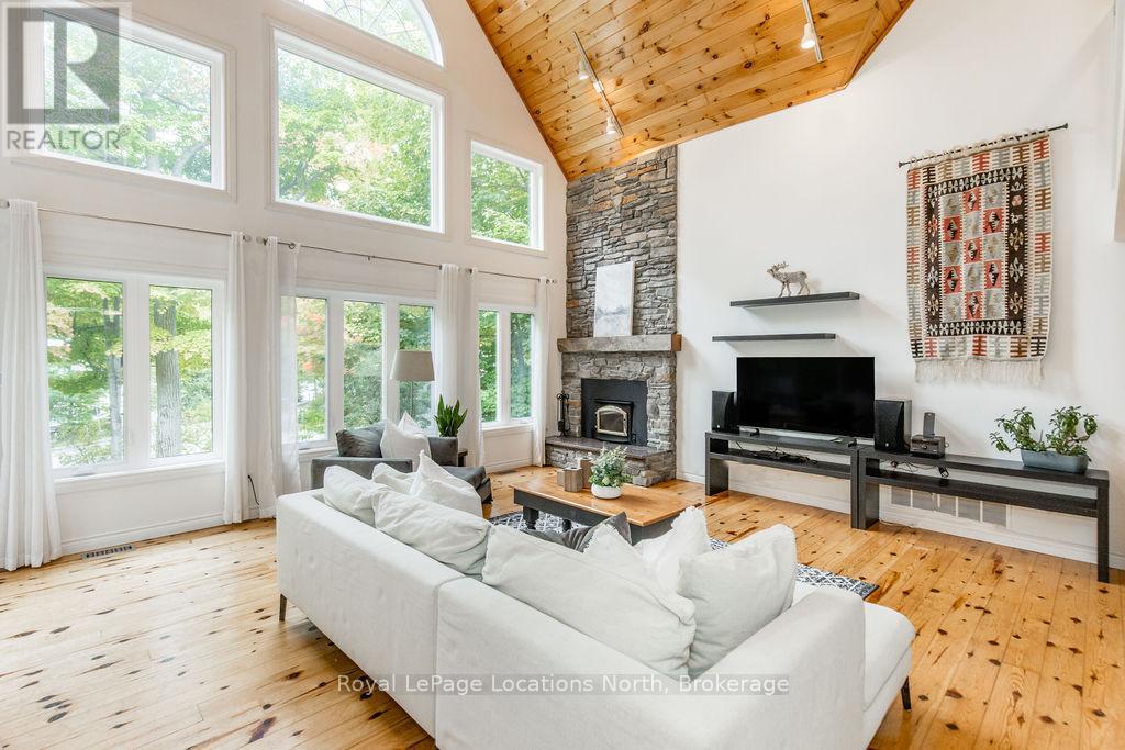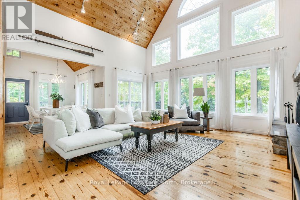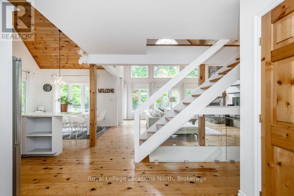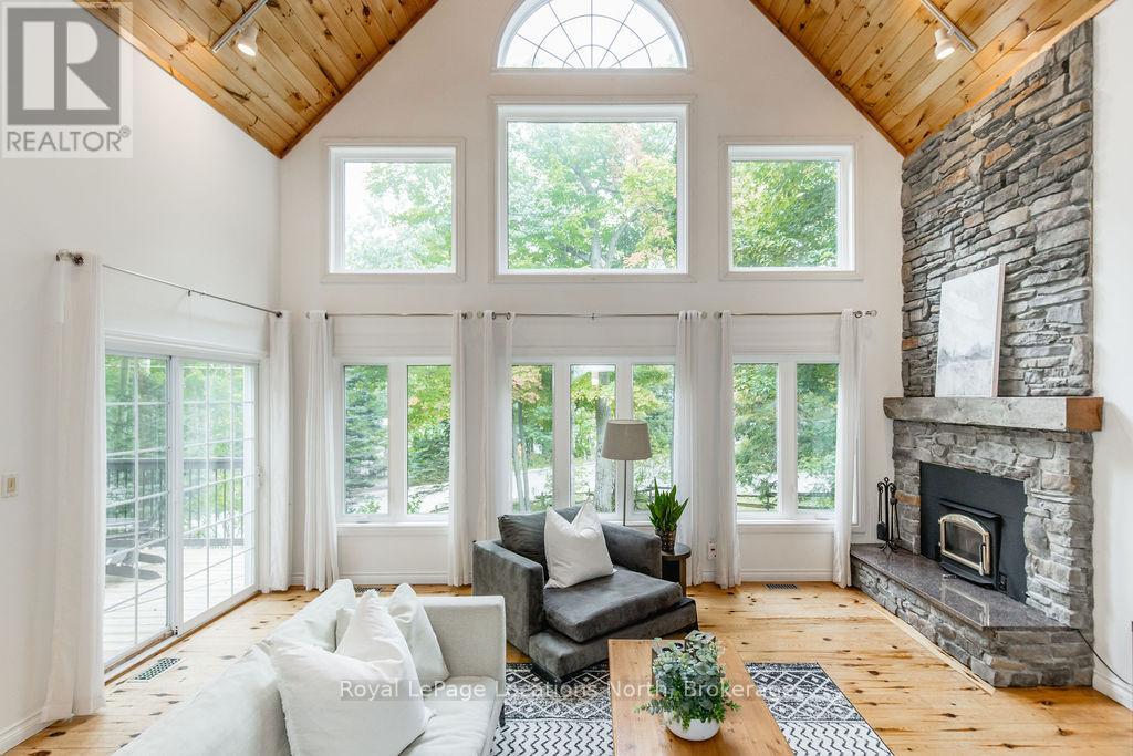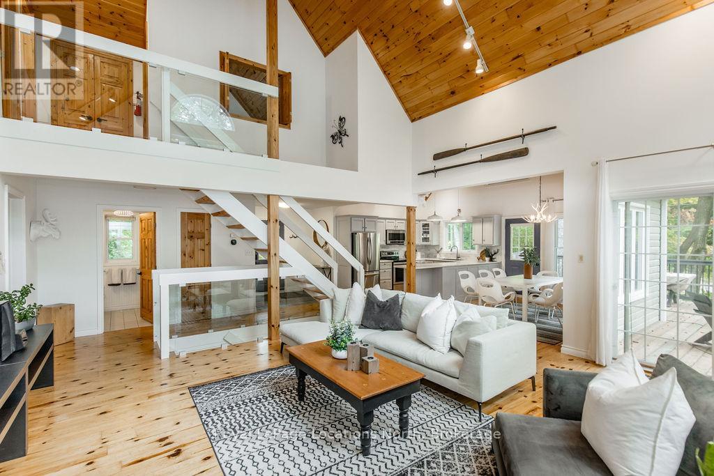 Short term Rental licensed*** Investment Opportunity + Enjoy Cottage life- Best of both worlds with this impressive 3-bedroom (+ 2 additional offices/den), 3-full-bath waterview home just steps from the white sandy shores of Georgian Bay, offering panoramic views of the bay and the Blue Mountains with unforgettable sunsets from your deck. Set on a private, mature 100' tree-lined lot in the picturesque Township of Tiny, this property offers authentic cottage character with modern, turnkey details. The main living area soars with vaulted pine ceilings and rustic wood flooring, anchored by a dramatic floor-to-ceiling stone fireplace, the perfect focal point for family gatherings. An open-concept kitchen with stainless steel appliances flows effortlessly into a large dining room designed for big dinners and holiday memories. A main-floor primary bedroom with office and convenient main-level living make day-to-day life easy; the second-floor primary bedroom features vaulted ceilings and double closets for generous storage and your primary suite. The home also offers a walk-out lower level with a separate living space, private entrance and in-home laundry, ideal as an in-law suite or additional rental unit. Modern touches like glass railing on the stairs, EV charger and new decks complete the package. Licensed for Short term rentals, this 2,703+ total finished sq. ft. home is a rare combination of lifestyle, flexibility and income potential- bring the family, host guests, or try it before you buy. Reach out for financials for rental income. Comes fully furnished. Don't miss this rare opportunity. (id:4069)