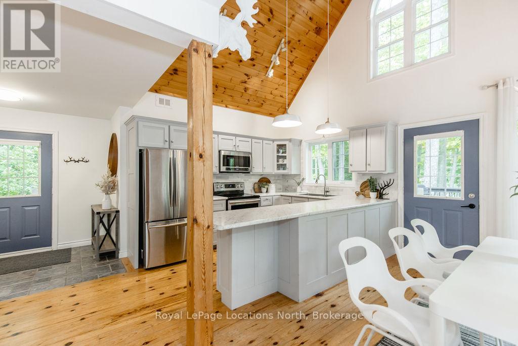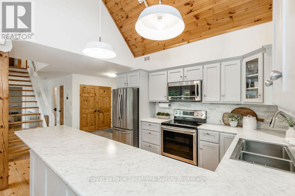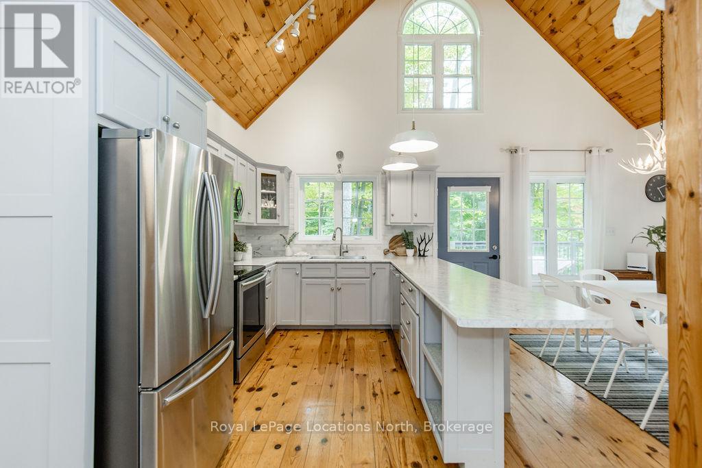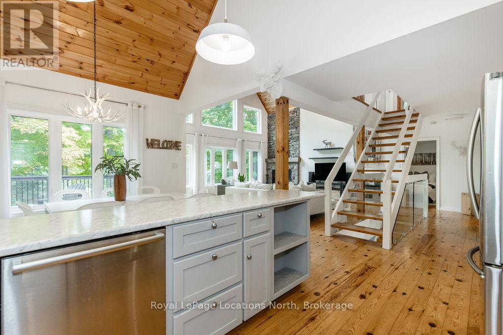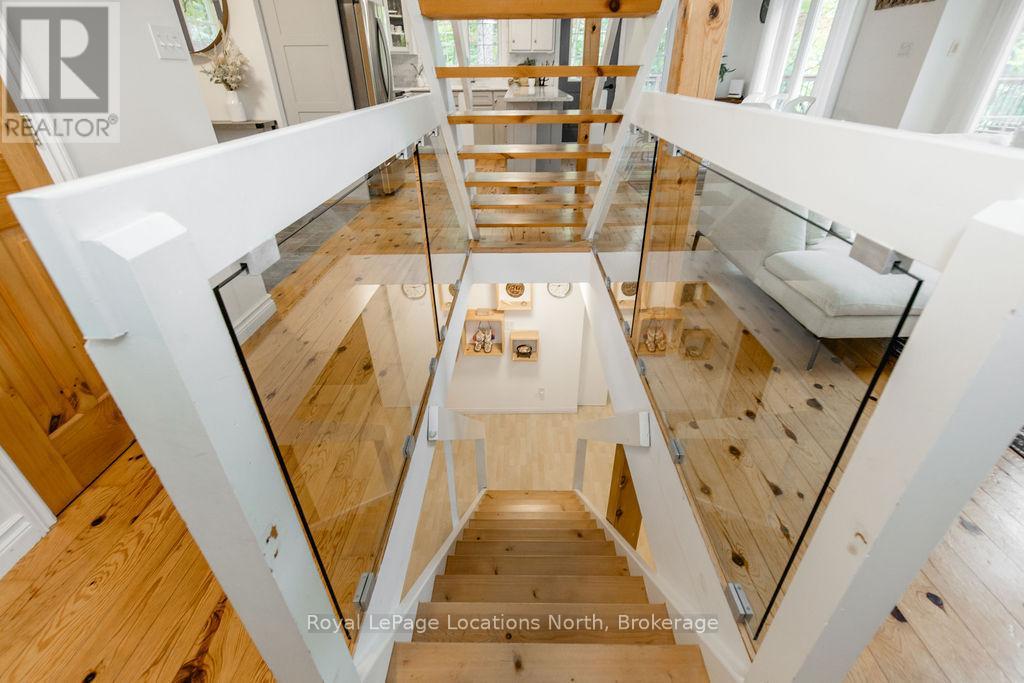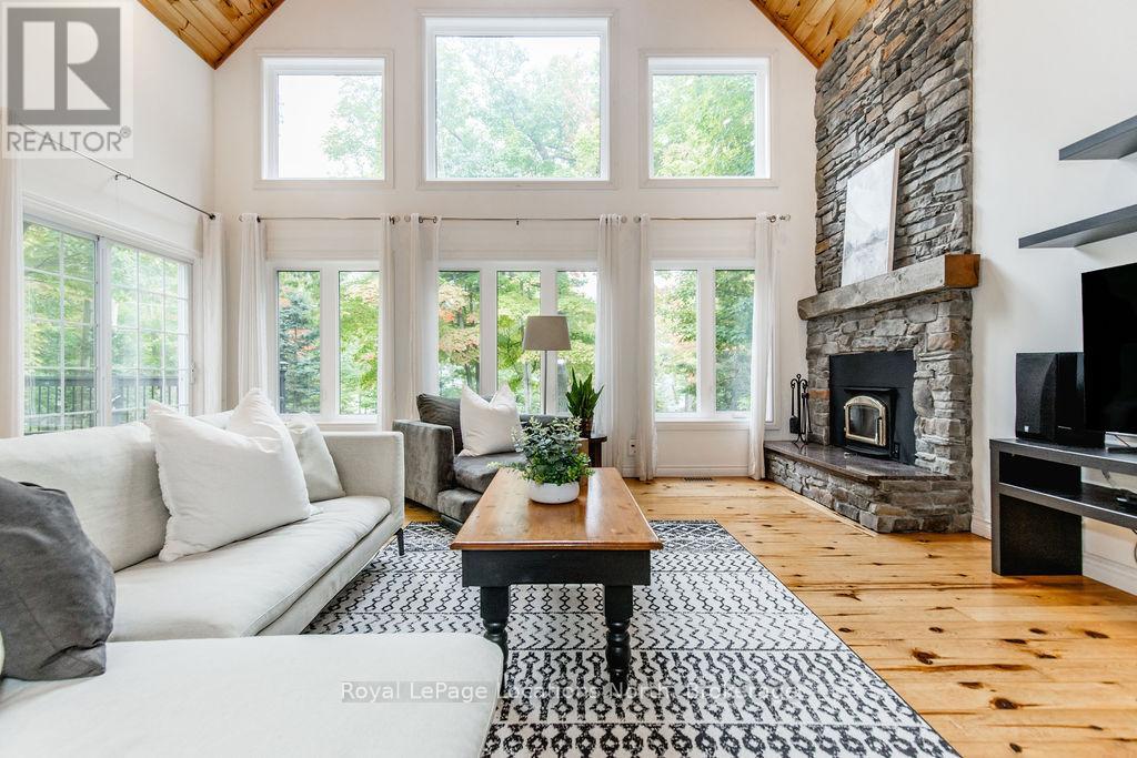 Short term Rental licensed*** Investment Opportunity + Enjoy Cottage life- Best of both worlds with this impressive 3-bedroom (+ 2 additional offices/den), 3-full-bath waterview home just steps from the white sandy shores of Georgian Bay, offering panoramic views of the bay and the Blue Mountains with unforgettable sunsets from your deck. Set on a private, mature 100' tree-lined lot in the picturesque Township of Tiny, this property offers authentic cottage character with modern, turnkey details. The main living area soars with vaulted pine ceilings and rustic wood flooring, anchored by a dramatic floor-to-ceiling stone fireplace, the perfect focal point for family gatherings. An open-concept kitchen with stainless steel appliances flows effortlessly into a large dining room designed for big dinners and holiday memories. A main-floor primary bedroom with office and convenient main-level living make day-to-day life easy; the second-floor primary bedroom features vaulted ceilings and double closets for generous storage and your primary suite. The home also offers a walk-out lower level with a separate living space, private entrance and in-home laundry, ideal as an in-law suite or additional rental unit. Modern touches like glass railing on the stairs, EV charger and new decks complete the package. Licensed for Short term rentals, this 2,703+ total finished sq. ft. home is a rare combination of lifestyle, flexibility and income potential- bring the family, host guests, or try it before you buy. Reach out for financials for rental income. Comes fully furnished. Don't miss this rare opportunity. (id:4069)