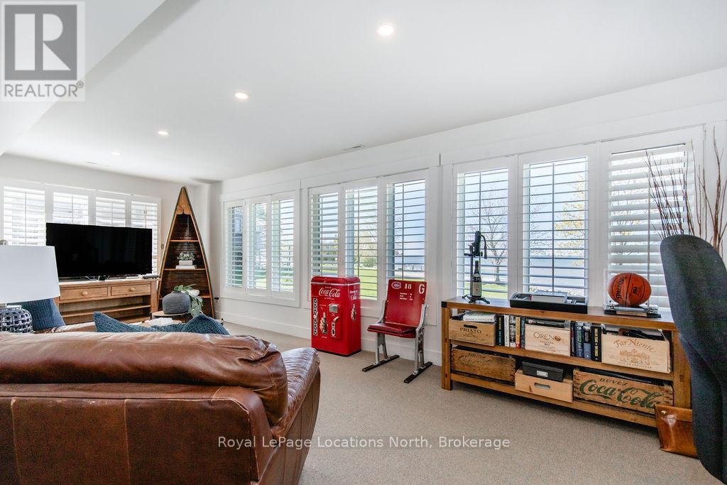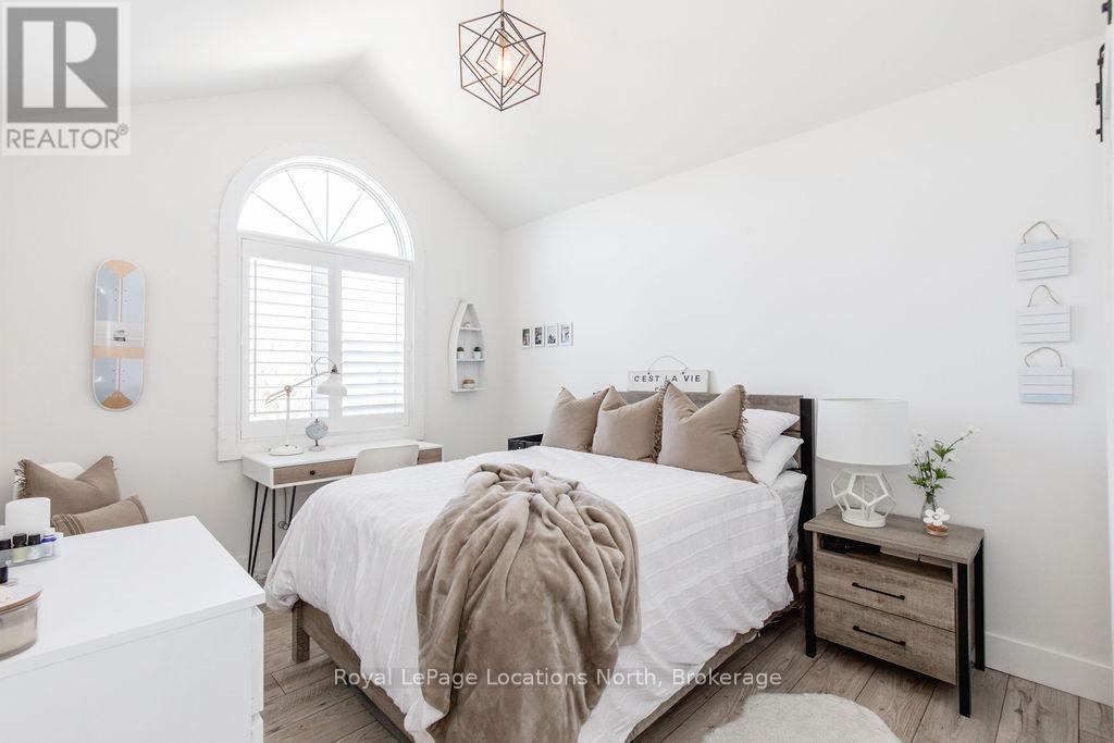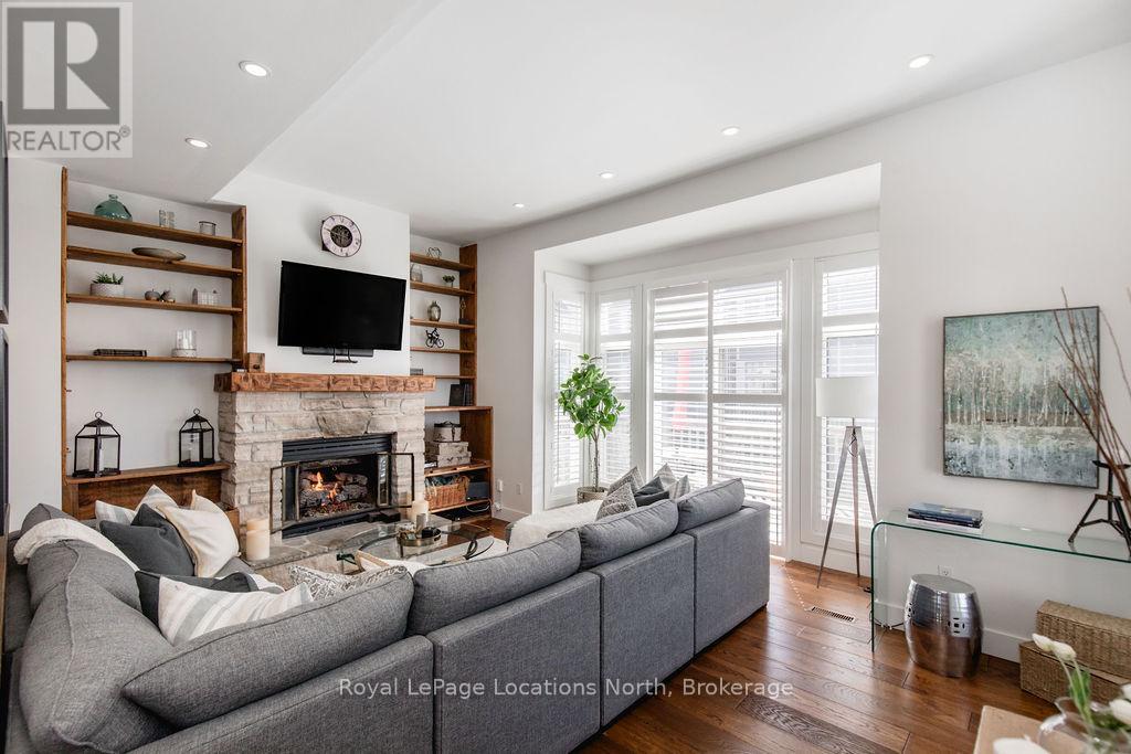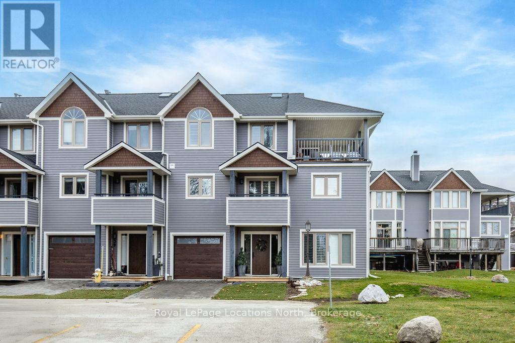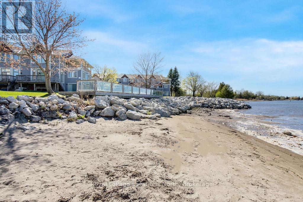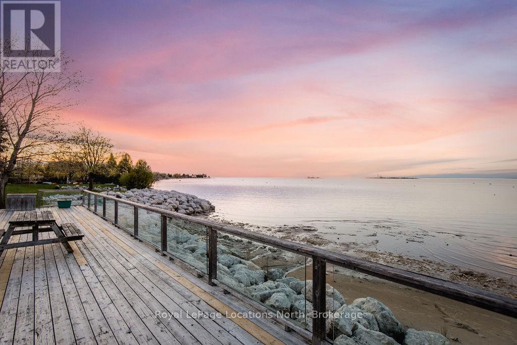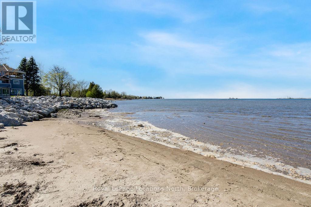 This is a RARE + EXCEPTIONAL property-an absolute gem w/ nothing comparable in all of Collingwood. Experience waterfront living at its finest in this stunning waterfront condo. Recharge on the brand new covered deck, measuring 25'9" x 11'1", your personal oasis for entertaining guests, admiring breathtaking sunsets, or simply unwinding w/ a good book. With maintenance-free living inside & out, you'll have more time to soak in the beauty of the Georgian Bay. This home has undergone a complete interior/exterior renovation, w/stunning rustic wide plank flooring, new stairs w/glass railings to brighten up the space + upgraded baseboard/trim to add a touch of elegance while keeping that upscale vibe. The custom kitchen was designed to be open-concept to the dining area w/ large island perfect for entertaining + quartz countertops. The dining overlooks the cozy living room w/stone fireplace, tall ceilings + walkout to another fabulous deck. An additional main floor family room is a favorite, surrounded by windows offering panoramic views of the bay. Perfect room to double as an art studio, office or gym w/measurements of 25.9x11.3ft. Waking up in the main floor primary bedroom is like a dream w/views for miles, while enjoying the luxury of heated floors every morning in the newly renovated ensuite. The 3rd level features 3 additional bedrooms + fully renovated bathroom. Indulge yourself after a day on the ski hills in the "spa" like room with a jacuzzi tub + sauna, adding a touch of relaxation to your lakeside retreat. Outside, the community amenities are equally impressive,w/outdoor saltwater pool, PICKLEBALL/tennis courts, a private sand beach area, + watercraft launch ramp. Downtown Collingwood is a short drive away with great dining + activities. Whether you're seeking a full-time residence/a weekend getaway, this waterfront haven has it all. Add incl- California shutters, gas hook up for BBQ, all newer appliances, upgraded lighting, New AC (1yr), new exterior. (id:4069)