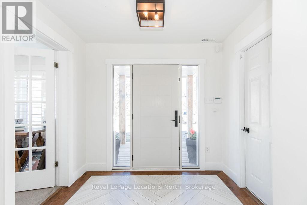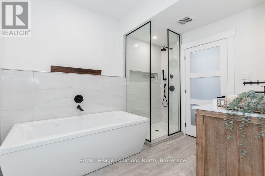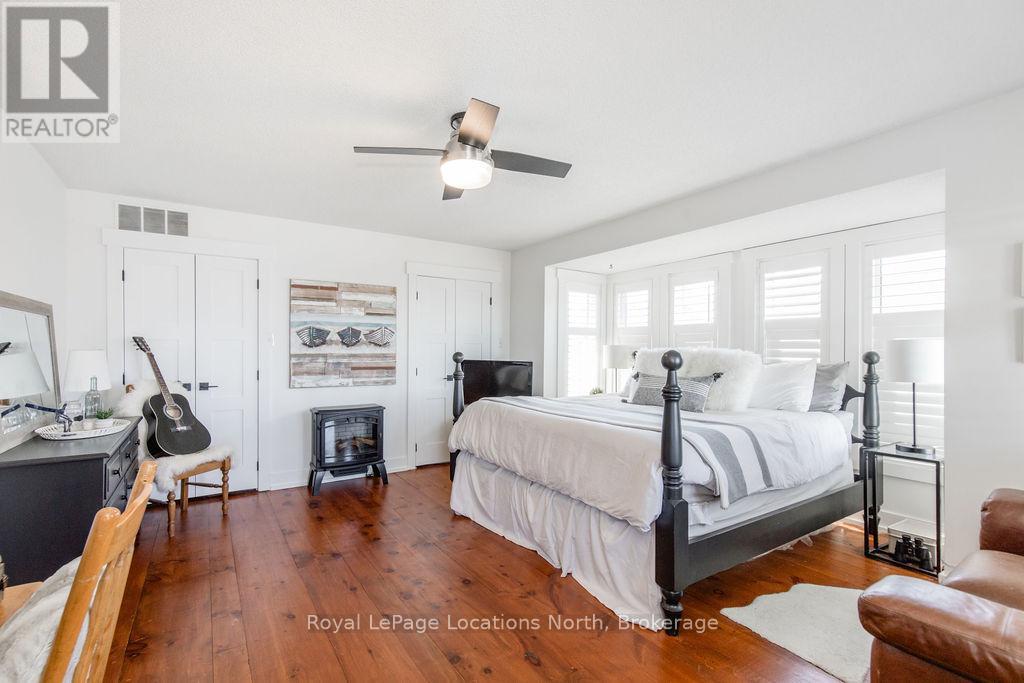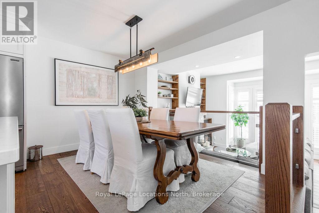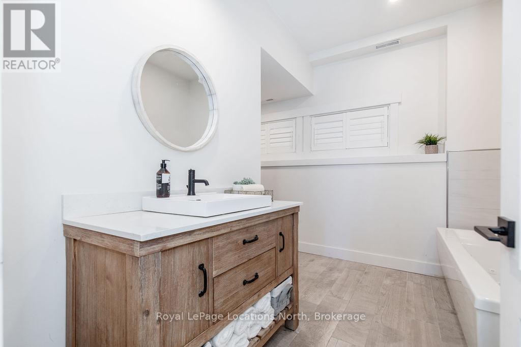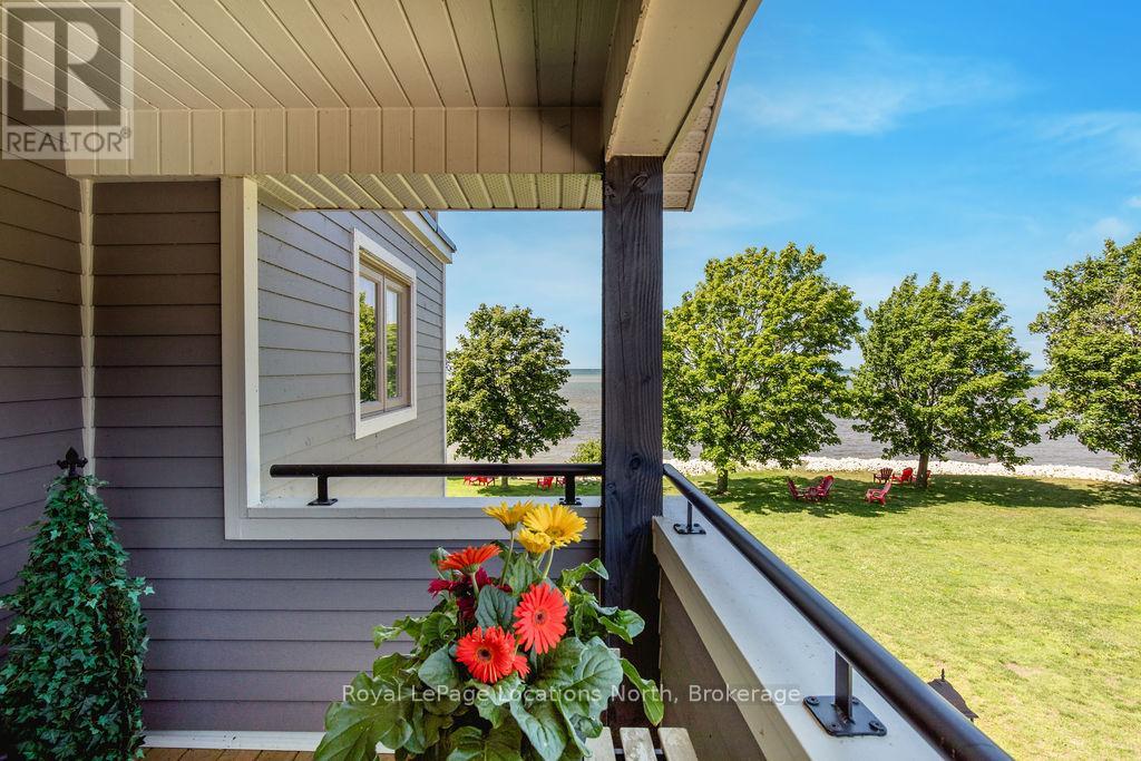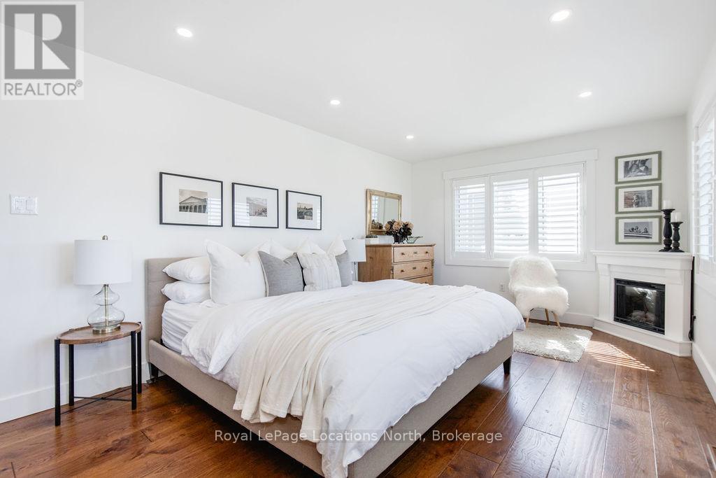 This is a RARE + EXCEPTIONAL property-an absolute gem w/ nothing comparable in all of Collingwood. Experience waterfront living at its finest in this stunning waterfront condo. Recharge on the brand new covered deck, measuring 25'9" x 11'1", your personal oasis for entertaining guests, admiring breathtaking sunsets, or simply unwinding w/ a good book. With maintenance-free living inside & out, you'll have more time to soak in the beauty of the Georgian Bay. This home has undergone a complete interior/exterior renovation, w/stunning rustic wide plank flooring, new stairs w/glass railings to brighten up the space + upgraded baseboard/trim to add a touch of elegance while keeping that upscale vibe. The custom kitchen was designed to be open-concept to the dining area w/ large island perfect for entertaining + quartz countertops. The dining overlooks the cozy living room w/stone fireplace, tall ceilings + walkout to another fabulous deck. An additional main floor family room is a favorite, surrounded by windows offering panoramic views of the bay. Perfect room to double as an art studio, office or gym w/measurements of 25.9x11.3ft. Waking up in the main floor primary bedroom is like a dream w/views for miles, while enjoying the luxury of heated floors every morning in the newly renovated ensuite. The 3rd level features 3 additional bedrooms + fully renovated bathroom. Indulge yourself after a day on the ski hills in the "spa" like room with a jacuzzi tub + sauna, adding a touch of relaxation to your lakeside retreat. Outside, the community amenities are equally impressive,w/outdoor saltwater pool, PICKLEBALL/tennis courts, a private sand beach area, + watercraft launch ramp. Downtown Collingwood is a short drive away with great dining + activities. Whether you're seeking a full-time residence/a weekend getaway, this waterfront haven has it all. Add incl- California shutters, gas hook up for BBQ, all newer appliances, upgraded lighting, New AC (1yr), new exterior. (id:4069)