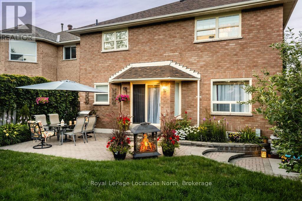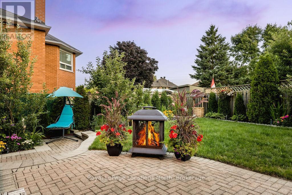 PRIVATE BACKYARD-Welcome to this beautifully maintained 4-bedroom, 4-bathroom home offering nearly 2,900 sq. ft. of finished living space. The main floor features a bright, open layout with a large front sitting room and formal dining area, both with hardwood flooring and oversized windows. The kitchen includes white cabinetry, tiled countertops and backsplash, stainless steel appliances, and an eat-in area with a walkout to the backyard. Across from the kitchen is a cozy family room with a wood-burning fireplace, perfect for relaxing evenings. The main level also includes a 2-piece bath and laundry room with convenient garage access. Upstairs, you'll find four generous bedrooms and an updated 4-piece bathroom. The primary suite features a 5PC ensuite with a soaker tub, glass walk-in shower, double vanity with granite counters, and ample storage.The fully finished lower level offers flexible living space with a large rec room, bar area, office nook, and an additional 2-piece bath ideal for entertaining or creating a home gym, playroom, or 5th bedroom. Step outside to an extremely private, fully landscaped backyard complete with an interlock patio, mature trees, and plenty of space for kids or pets to play. Plus, a hookup for a hot tub is already in place. Six car parking. A wonderful home for growing families in a desirable neighbourhood. (id:4069)