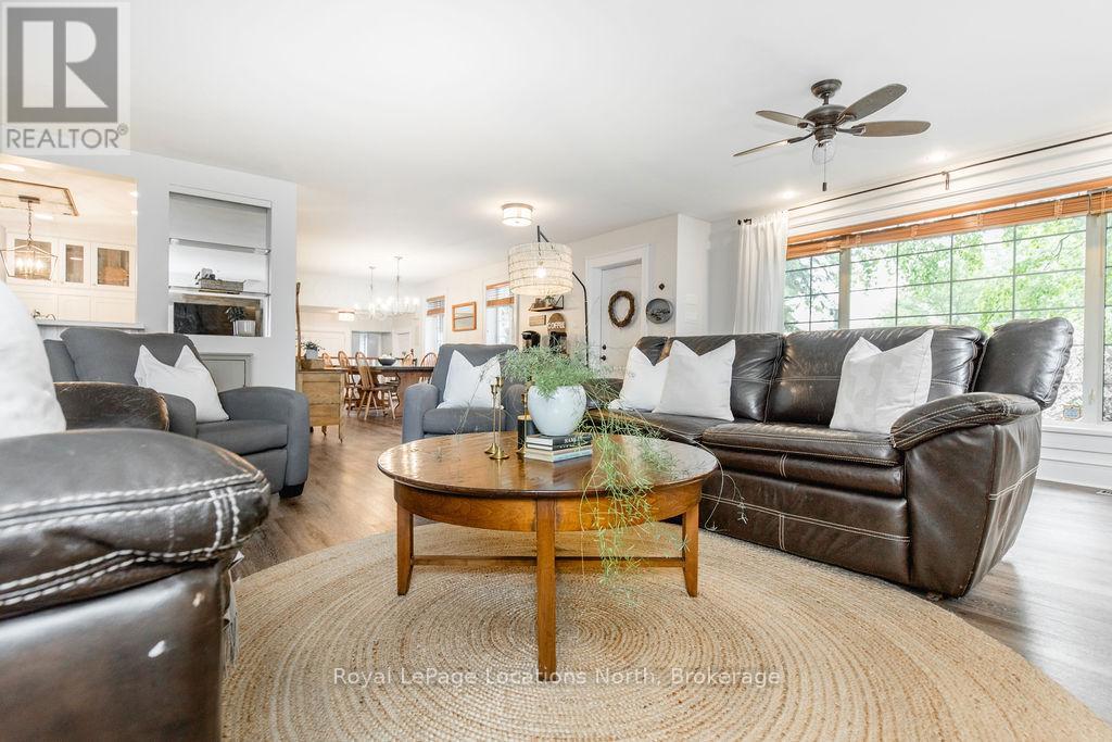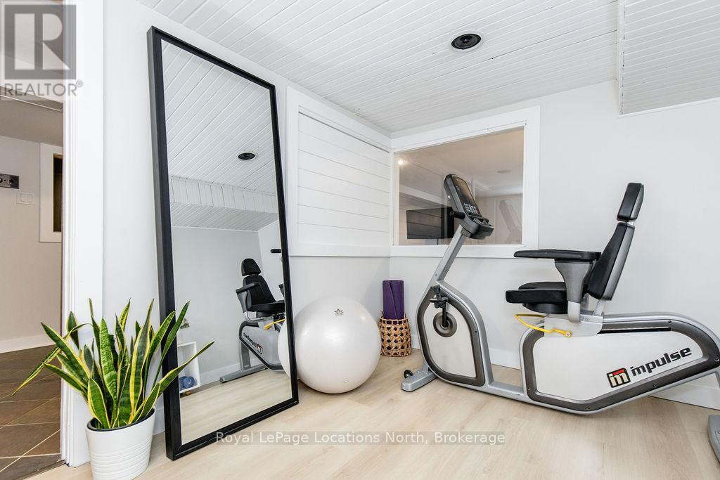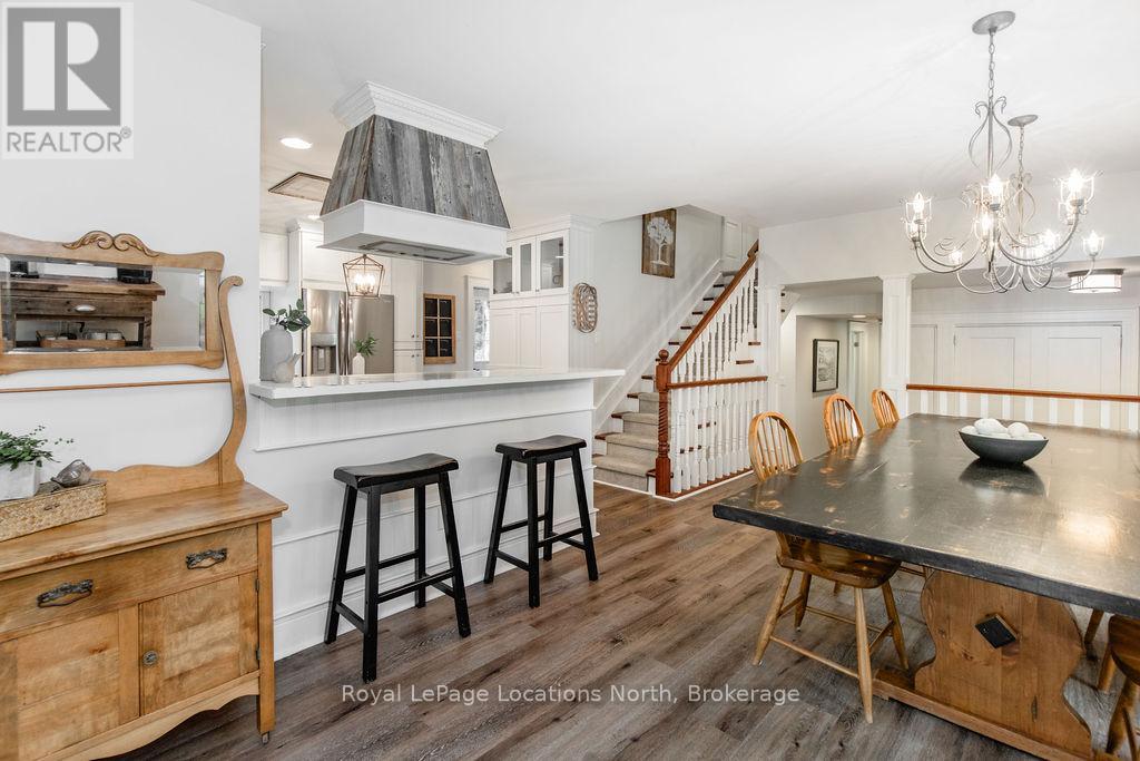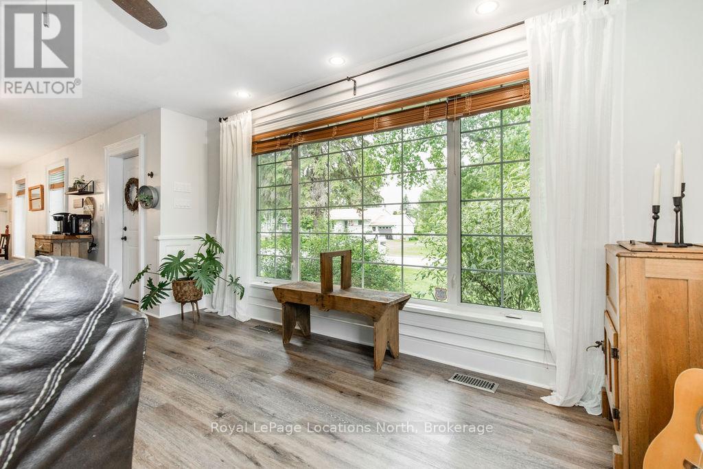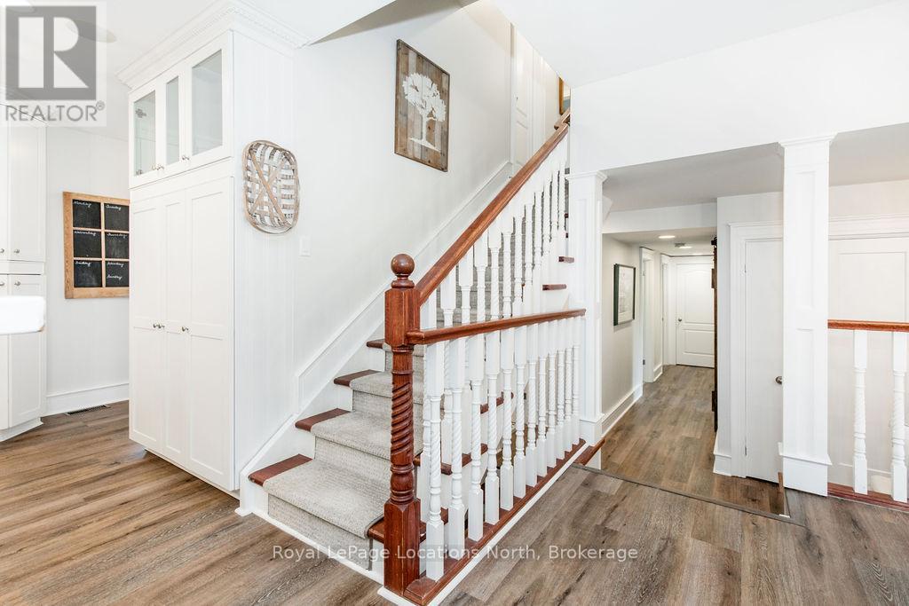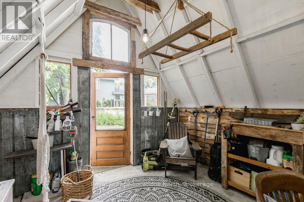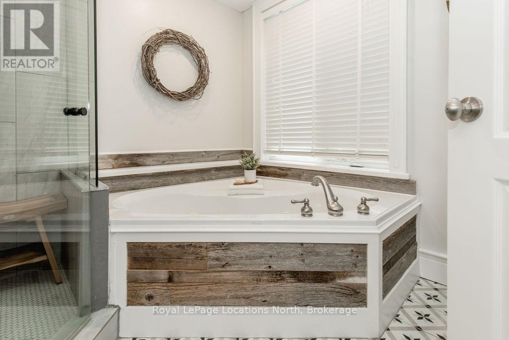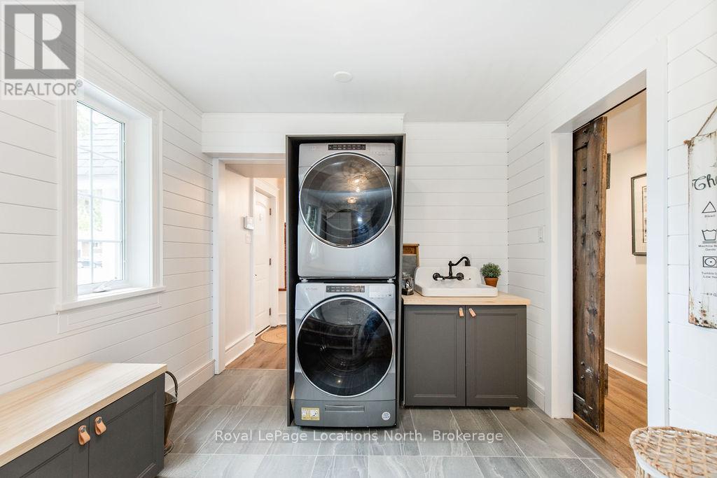 DETACHED SHOP + SECOND DRIVEWAY. In Law capability. Welcome to this charming piece of paradise in the heart of Stayner. Nestled on a PRIVATE 93' x 158' lot surrounded by mature trees, this beautifully updated 4-bedroom, 4-bathroom home offers exceptional space, comfort, and privacy. The backyard is an entertainers dream featuring an above-ground pool with a large composite deck, hot tub, outdoor kitchen, dining area, lounging zones, and a cedar sauna. A cozy she shed adds the perfect escape for quiet moments. One of the standout features is the detached oversized garage/shop with soaring ceilings, hydro, and its own driveway is deal for a workshop, home business, or extra storage. There's also ample room to park boats, trailers, or multiple vehicles. Inside, the home impresses with a stylish front mudroom/laundry with barn door, two bedrooms, and a full bathroom on the entry level. The main floor offers a spacious dining area with room for a harvest table, a classic kitchen with quartz counters, farmhouse sink, breakfast bar, and stainless steel appliances, along with a large living room and sunken family room with vaulted ceilings, gas fireplace, built-ins, and walkout to the backyard. The primary suite includes a Juliet balcony, 4-piece ensuite, and a 2024 custom closet system. The lower level adds even more living space with a rec room, new wet bar with wine fridge and butcher block counters, a 3-piece bath, and an exercise room across from the sauna. Additional highlights include an RO water system, 2015 AC and furnace, extra attic insulation, built-in sound system, and a full renovation completed in 2002. Looking for a unique home that is meticulous- this is the one! (id:4069)