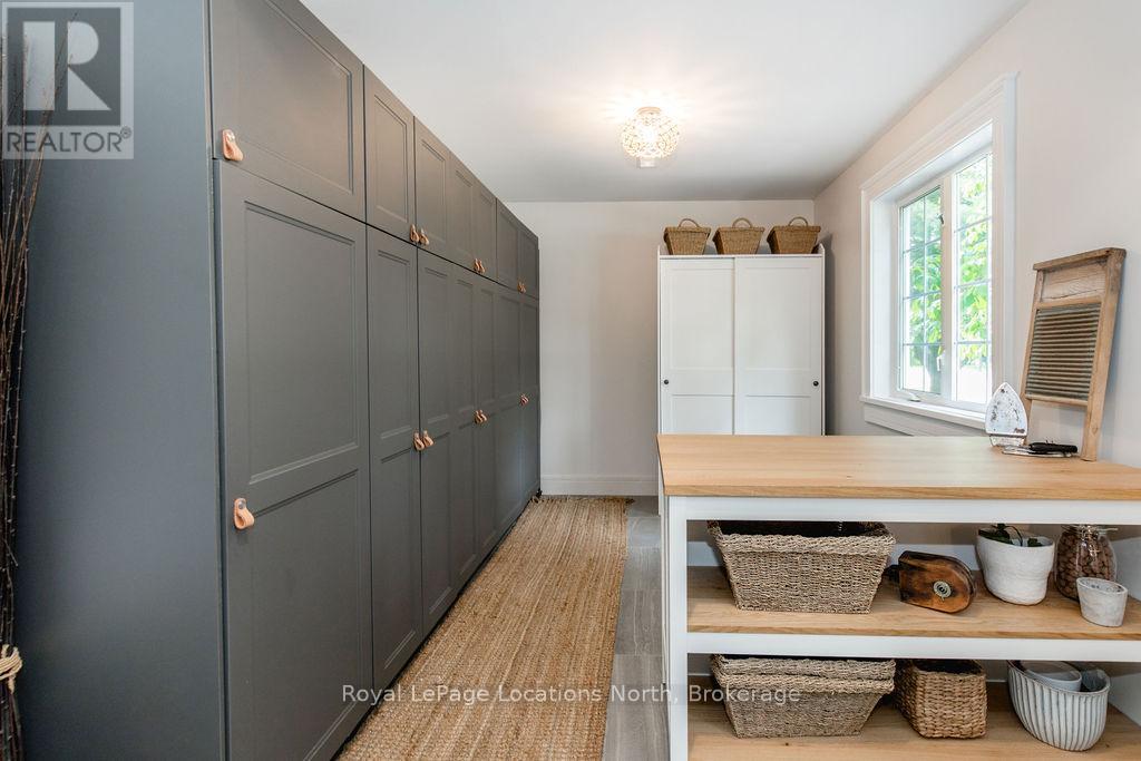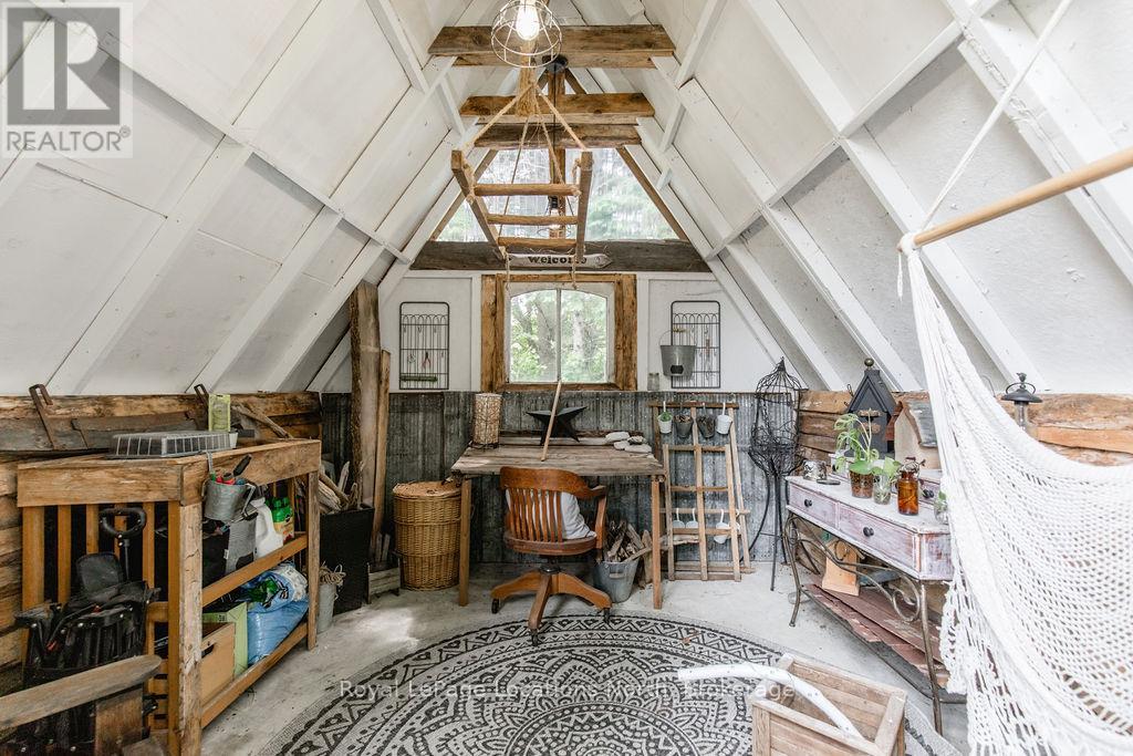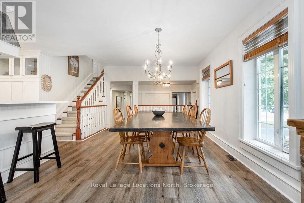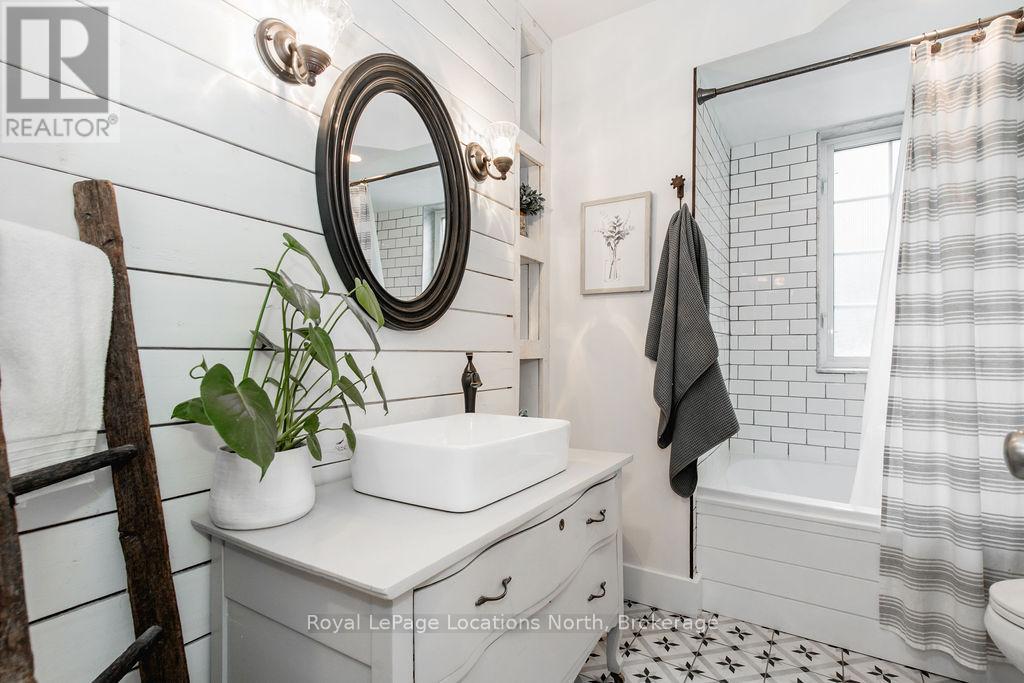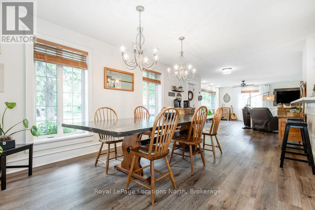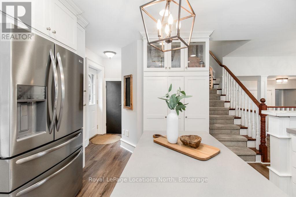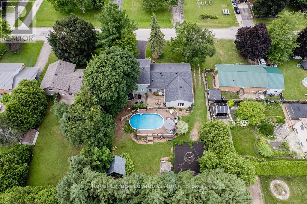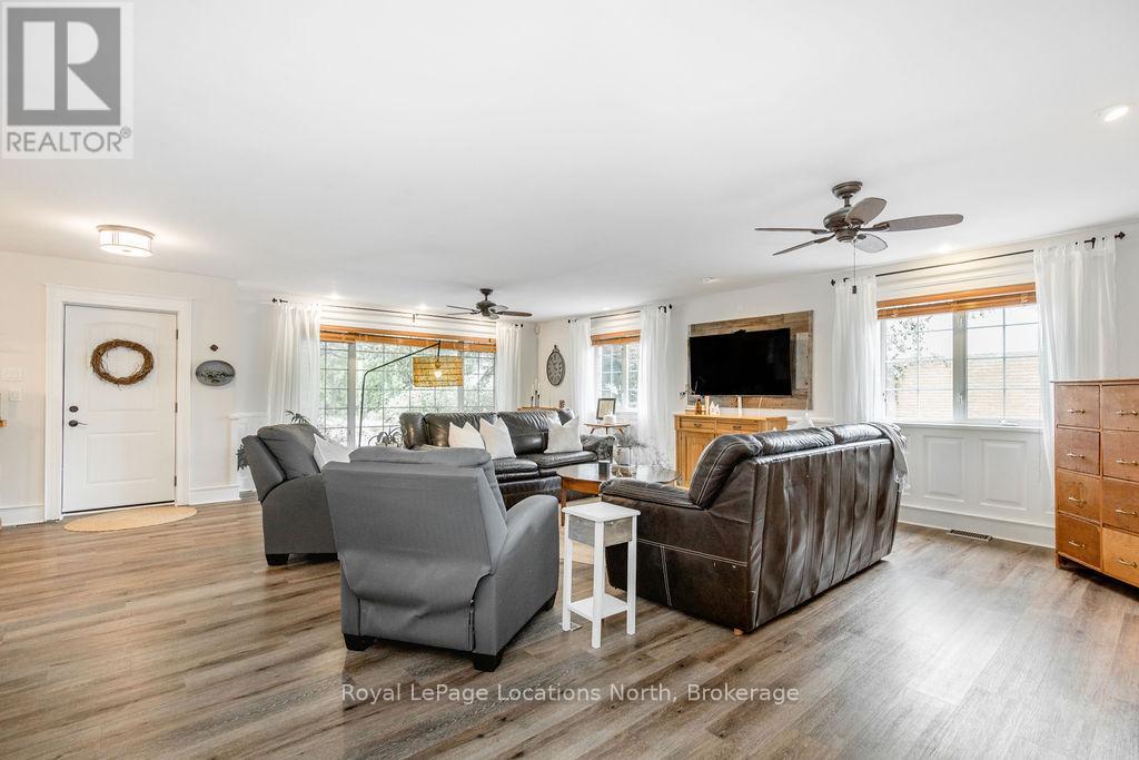 DETACHED SHOP + SECOND DRIVEWAY. In Law capability. Welcome to this charming piece of paradise in the heart of Stayner. Nestled on a PRIVATE 93' x 158' lot surrounded by mature trees, this beautifully updated 4-bedroom, 4-bathroom home offers exceptional space, comfort, and privacy. The backyard is an entertainers dream featuring an above-ground pool with a large composite deck, hot tub, outdoor kitchen, dining area, lounging zones, and a cedar sauna. A cozy she shed adds the perfect escape for quiet moments. One of the standout features is the detached oversized garage/shop with soaring ceilings, hydro, and its own driveway is deal for a workshop, home business, or extra storage. There's also ample room to park boats, trailers, or multiple vehicles. Inside, the home impresses with a stylish front mudroom/laundry with barn door, two bedrooms, and a full bathroom on the entry level. The main floor offers a spacious dining area with room for a harvest table, a classic kitchen with quartz counters, farmhouse sink, breakfast bar, and stainless steel appliances, along with a large living room and sunken family room with vaulted ceilings, gas fireplace, built-ins, and walkout to the backyard. The primary suite includes a Juliet balcony, 4-piece ensuite, and a 2024 custom closet system. The lower level adds even more living space with a rec room, new wet bar with wine fridge and butcher block counters, a 3-piece bath, and an exercise room across from the sauna. Additional highlights include an RO water system, 2015 AC and furnace, extra attic insulation, built-in sound system, and a full renovation completed in 2002. Looking for a unique home that is meticulous- this is the one! (id:4069)