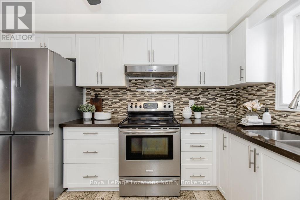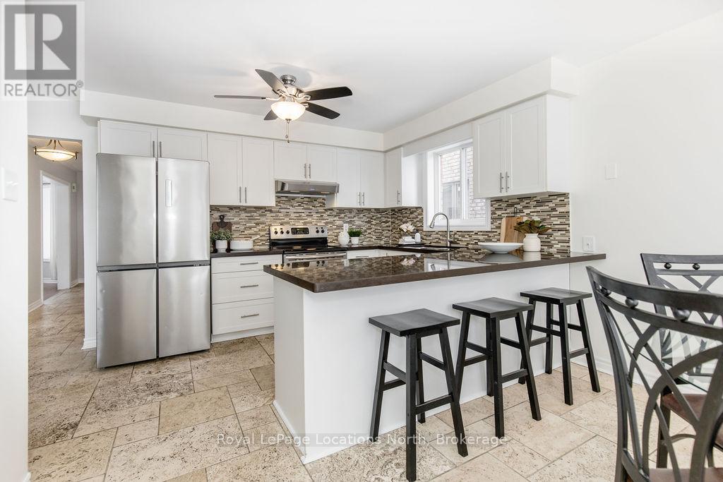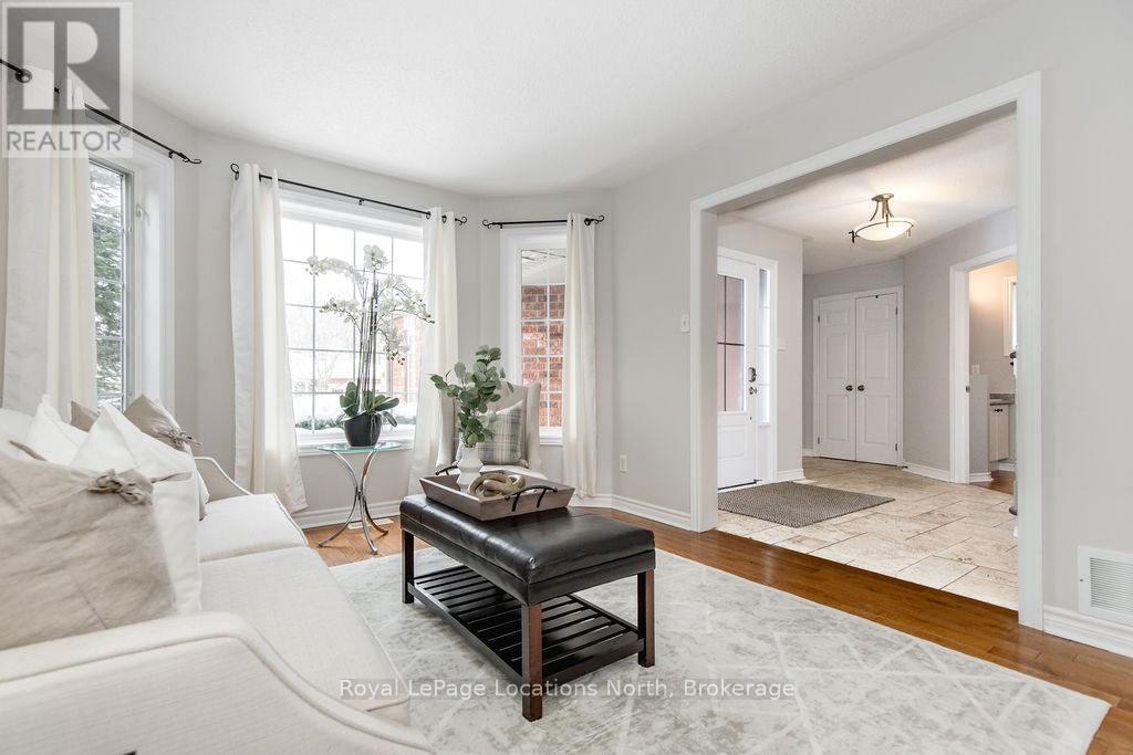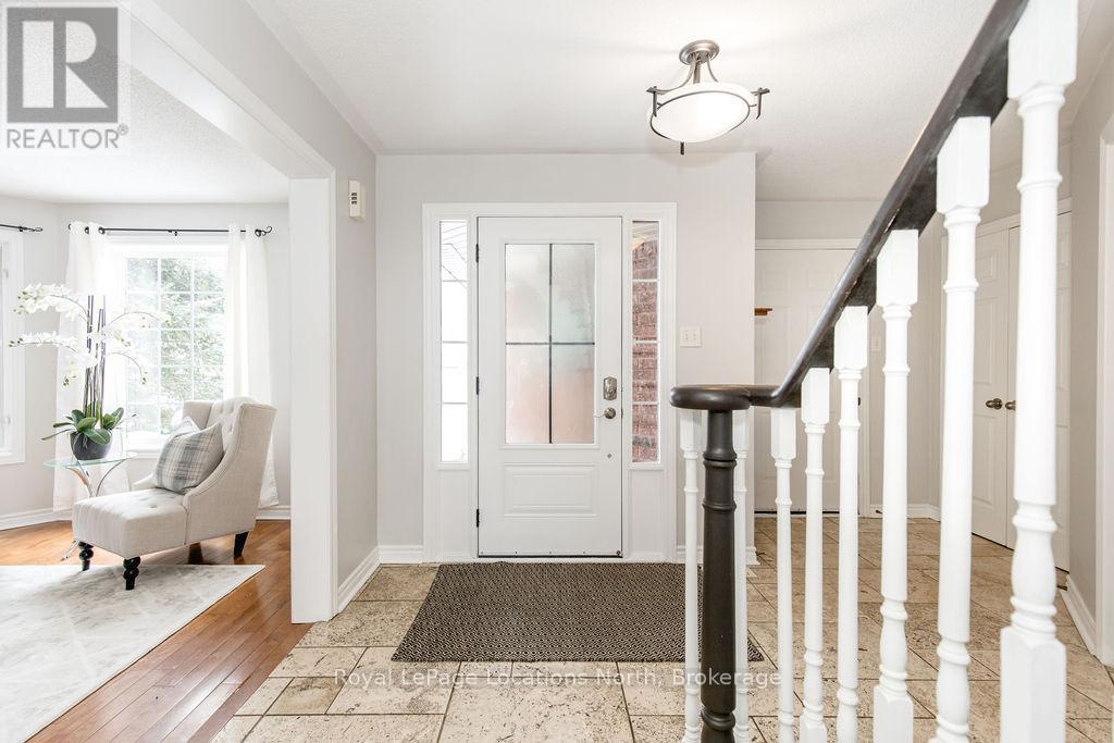 Stunning 4-Bedroom Home in Desirable Holly - Welcome to this beautifully appointed 4-bedroom, 4-bathroom home in the sought-after, family-friendly neighbourhood of Holly. Recent updates include a new furnace (2024), new front & patio doors (2024), freshly paved driveway, newer carpeting (2021), roof (2018) & several updated windows. From the moment you step inside, you'll be greeted by a spacious foyer w/ elegant tumbled marble floors. A wheelchair-accessible main-floor powder room adds convenience & connects to the laundry room. The living room, featuring hardwood floors, offers a picturesque view of the landscaped front yard & newly laid walkway, while the dining room is perfect for hosting family & friends.The tumbled marble continues into the tastefully updated eat-in kitchen, complete w/ modern cabinetry, solid surface countertops, a sleek back splash & custom California shutters. Adjacent to the kitchen, the inviting family room features a fireplace w/ a brand-new wooden mantle & overlooks the backyard, also adorned w/ California shutters.Step outside to the fully fenced backyard, lovely patio & beautiful gardens - an ideal space for relaxing or entertaining. Upstairs, the spacious primary bedroom boasts a walk-in closet & 4PC ensuite w/ a relaxing soaker tub. Three additional bedrooms & a main 4PC bathroom complete the second level.The freshly painted basement offers a versatile space for entertainment or play, featuring a 2PC bathroom w/ a rough-in for a shower. Additional highlights include a 2-car garage w/ inside entry. Ideally located just steps away from an entrance to the Ardagh Bluffs hiking trails, this home offers the perfect blend of nature & convenience. Families will also love being within walking distance to both public and Catholic elementary and secondary schools. With nearby parks, amenities & a welcoming community, this move-in ready home is an exceptional opportunity in one of Barrie's most desirable neighbourhoods. (id:4069)