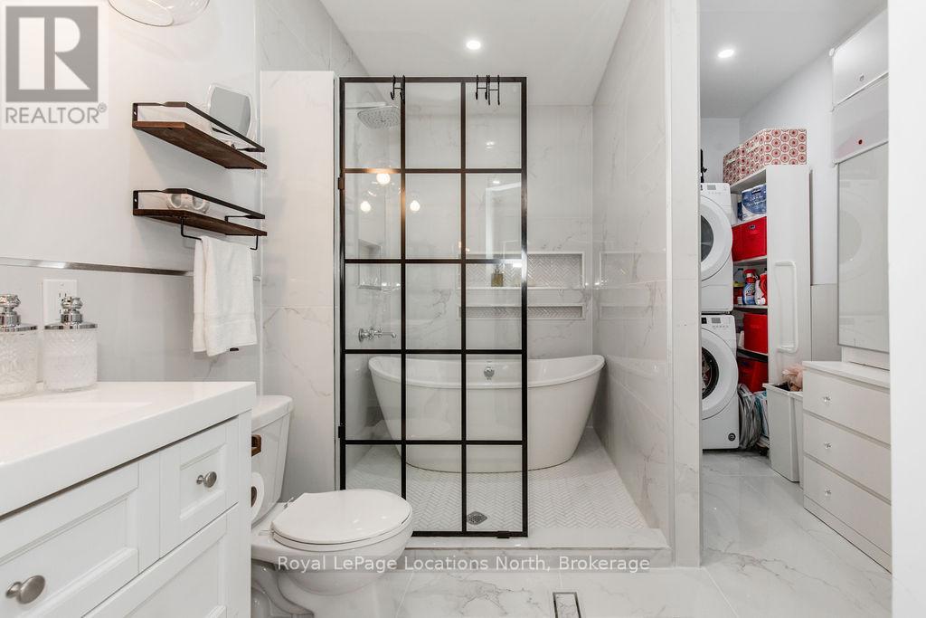 **MAINTENANCE FREE + IN-LAW SUITE**Welcome to this stunning END UNIT townhome located in a sought-after golf course community, where neighbours are like family. This home is linked only at the garage, + is an end unit offering the privacy of a detached property w/ lots of windows to let the sunshine in . The charming covered front porch is perfect for enjoying summer evenings. Designed to accommodate a large family, the home offers 4+1 spacious bedrooms and 3.5 luxurious bathrooms. FULLY FINISHED from top to bottom this home offers 2588 sqft of upgraded luxury living. The main floor impresses w/ its 9-ft ceilings + a grand family room featuring 25-foot vaulted ceilings focused around a cozy gas fireplace. The family room opens onto a backyard w/ mature trees + patio, creating a peaceful retreat. The kitchen is the focus on the home which offers lots of counter space, with upgraded cabinets, new quartz countertops, a modern backsplash, stainless steel appliances, + a breakfast bar overlooking the generous dining space. Perfect for entertaining. The main floor primary bedroom offers a spa-like ensuite w/ a glass shower, floating tub, custom vanity, modern lighting + beautiful tiles. It also features a walk-in closet + a secondary laundry area for additional convenience. An additional bedroom/office completes the main floor w/add. bathroom for guests. The 2nd floor, offers 2 more bedrms, a 4-piece semi-ensuite bathroom, + a cozy computer nook that overlooks the living room. The lower level offers the perfect in-law suite, w/ a great sized second kitchen, a lg family room, an oversized bedroom w/ a 4-piece ensuite, + laundry area with laminate flooring throughout. Add. highlights include inside entry to the garage, new garage doors, New HWT, visitor parking, park, upgraded lighting, door hardware, central air, + exterior ground maintenance, inclu. snow removal. Live maintenance free in the future with roof/window/exterior, fully covered when replacement is needed. (id:4069)
