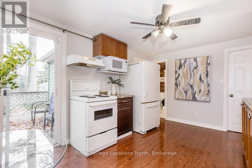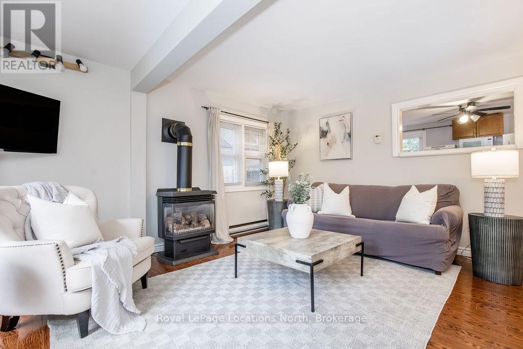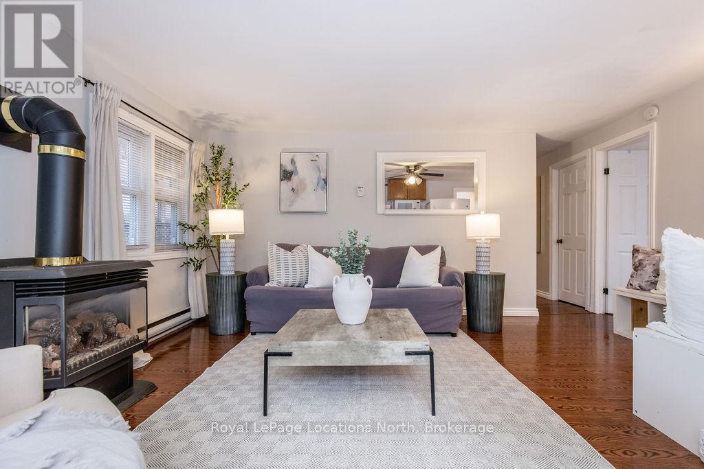 Just Steps to the Beach - The Perfect 4-Season Getaway or Year-Round Home. Welcome to a cozy 3-bedroom, 1-bathroom ranch bungalow tucked on a private 50 x 120 ft lot, only a short stroll to the sandy shores. Whether you're dreaming of a weekend cottage, your first home, or a comfortable place to retire, this property fits beautifully into every stage of life. Inside, the living room invites you to curl up by the gas fireplace after a day at the beach or on the ski hill. The spacious kitchen gives you plenty of room to cook and entertain, with a walkout that leads to a back deck overlooking a private, tree-lined yard , complete with a firepit for those warm summer nights with family and friends. Three large sheds provide extra storage options. There's also a laundry hook-up ready to go. Location is everything, and here you're in the heart of it all: walk to Starbucks, Tim Hortons, restaurants, and local shopping. Enjoy the ease of gas/baseboard heat, municipal water and sewer, and true 4-season living. And when winter rolls around? Blue Mountain is just a quick 15-minute drive. A simple, comfortable home in the perfect spot and exactly where you want to be. (id:4069)