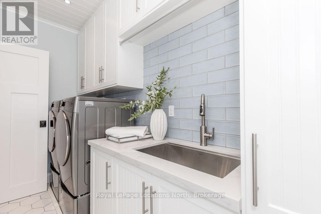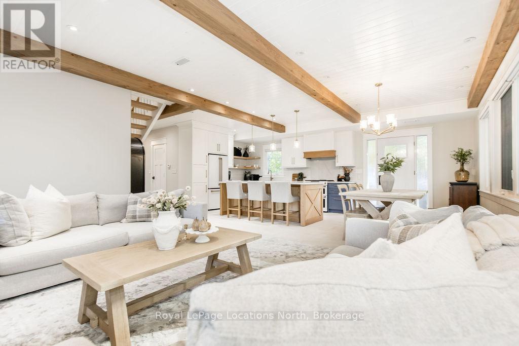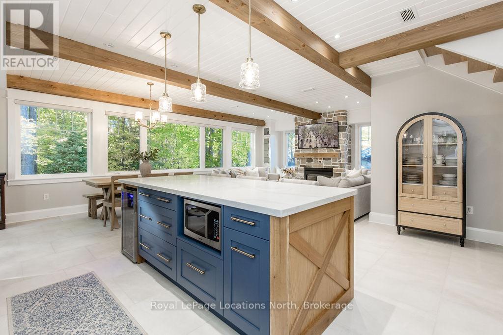 DREAM HOME - Welcome to this stunning, custom-built 3-bed, 3-bath home showcasing exceptional craftsmanship, built in 2023, perfectly positioned backing onto protected land & directly across from the river in beautiful Wasaga Beach. Designed w/ a mix of modern luxury & timeless character, this home captures a century-home feel with its large mouldings, custom doors, & wood beams with a custom-built stone fireplace accenting the main floor. Inside, the bright open-concept layout features wall-to-wall windows overlooking the forest, flooding the space w/ natural light. The custom kitchen is a true showpiece, showcasing a large quartz island, blue and white cabinetry, a mini wine fridge, & a full quartz backsplash. It's finished w/ a high-end signature line of Wi-Fi-enabled appliances, combining elegance & smart convenience for the modern homeowner. The dining area sits beside large windows, while the living room offers aged wood ceiling beams and tongue-and-groove ceilings that bring warmth & texture throughout along w/ the wide-plank white oak hardwood. Upstairs the hardwood stairs, lead to spacious bedrooms, each w/ custom walk-in closets, built-in desks, shiplap ceilings, & designer touches like wallpaper accents & skylights. The primary suite feels like a retreat, featuring a cozy fireplace, luxurious ensuite w/ floating tub, double quartz sinks, black cabinetry, & a walk-in closet w/ custom cabinetry & make up desk perfect for getting ready for the day.Luxury features include- Inside entry to garage with epoxy flooring + custom storage, hydronic in-floor heating, heated driveway & walkways while outdoors, enjoy the built-in BBQ, rubberized surfacing on patios w/ hot tub hook up, sprinkler system, & tranquil forest backdrop w/ cedar trees surround the patio for privacy.Interior features include motorized blinds, smart home system, security cameras, spray-foam insulation, high-efficiency boiler system, & a hard-wired generator. One to remember! (id:4069)