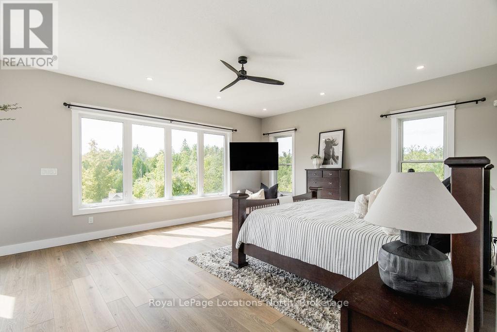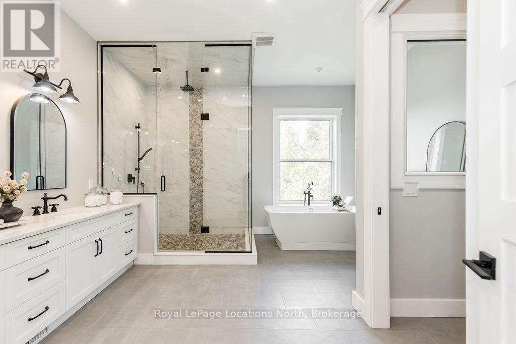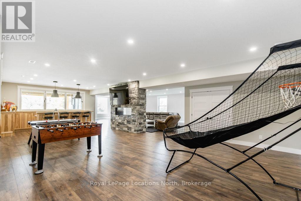 Welcome to a truly rare private estate set on 92 acres of pristine countryside with kilometres of private trails, mature forest, and an operational sugar shack built from on-site harvested timber with 300 maple taps. This 8,000+ total sq ft custom-built luxury home offers potential for 7-8 bedrooms plus an in-law suite, ideal for a multi-generational family compound, luxury retreat, or estate property.Designed for comfort and efficiency, the home features in-floor radiant heating throughout, two furnaces, and an oversized 3-car garage with inside entry to a spacious mudroom, mezzanine storage, and workshop area. The grand open-concept living space showcases vaulted ceilings, wide-plank flooring, pot lights, and large custom windows overlooking the property.The custom kitchen features a commercial-grade 46" Kucht gas range with 8 burners, oversized island, quartz countertops, custom hood, designer pendant lighting, butler's pantry, large laundry/pantry room, and built-in desk workspace. The home offers 3+2 bedrooms and 5 full plus 2 half bathrooms, all finished with quartz counters, custom vanities, tile surrounds, and designer lighting. A formal office with French doors supports remote work with strong high-speed internet.The primary suite includes its own heating zone, walk-in closet, and spa-inspired ensuite with floating tub, glass shower, and double vanity. The lower level offers 9-ft ceilings, a bar with folding window for indoor-outdoor entertaining, double-sided stone fireplace, wired theatre room, games room, gym with walkout, and a separate garage entrance with future locker or mudroom potential. Integrated sound system throughout the home, deck, and gym.Outside, enjoy a covered front porch with glass railings, armour stone steps, gardens, vegetable beds, and a cleared area for campouts or future use. The 3,000 sq ft heated shop features radiant floors, 16-ft ceilings, its own propane tank, and oversized garage doors. (id:4069)