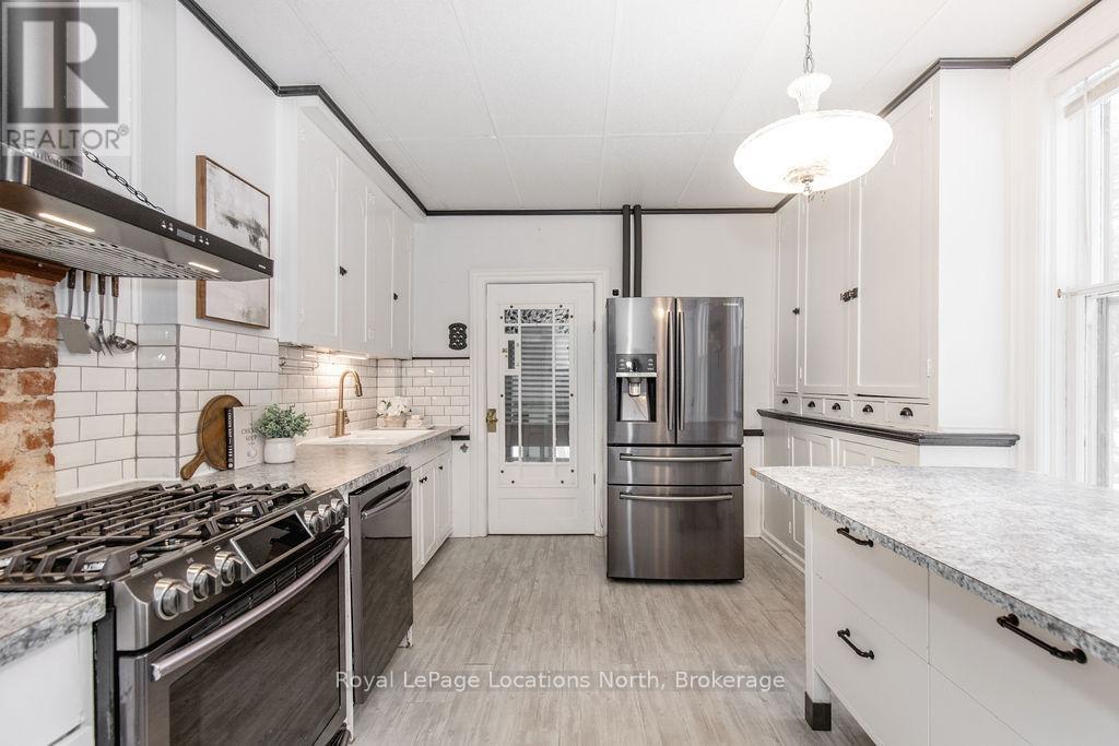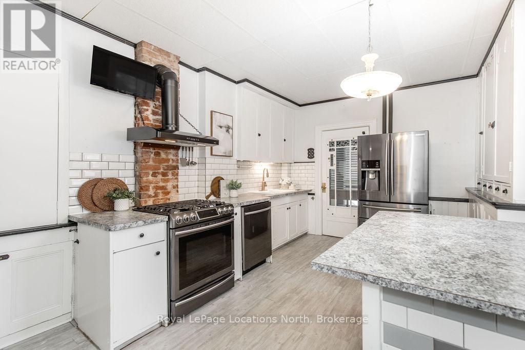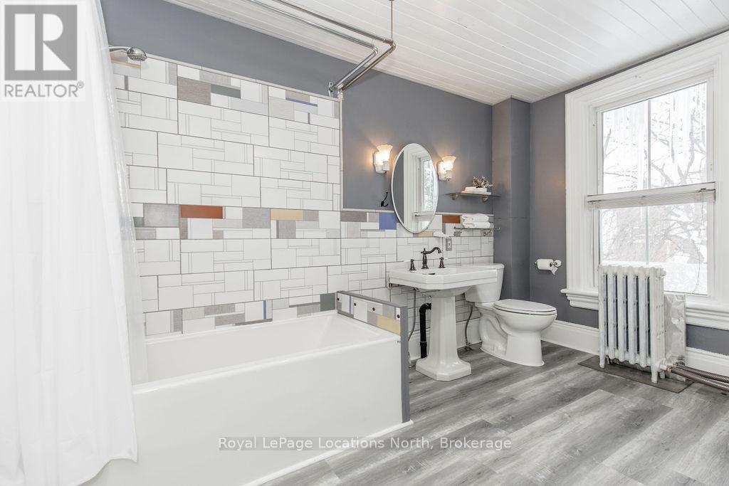 Welcome to 29 Tecumseth Street in Orillia, a distinctive 212-storey century home where history meets modern updates. Originally built in 1900 just across the street and carefully relocated to its present setting in 1911, this 5-bedroom, 4-bathroom residence blends classic charm with thoughtful improvements. With minimal changes, it could easily be converted back to a 6-bedroom home. Step inside through the welcoming side foyer and you're immediately greeted by warmth and character. The main hallway features the classic original staircase, a timeless focal point.The spacious living room offers a bay window, built-ins, and a marble fireplace surround, while the large formal dining room features a plate rail and electric fireplace, ideal for hosting family gatherings and celebrations. The oversized powder room adds convenience, and the kitchen includes updated appliances, original baker's table and cabinetry, and access to the butler's staircase. A bright 3-season room provides access to the backyard and a separate basement entrance. Upstairs, the second level offers two separate wings encompassing four bedrooms,including a primary suite with a walk-in dressing room thoughtfully converted from a former bedroom. A 4-piece main bath with tiled shower and convenient laundry closet, along with an additional 2-piece bath, complete the level. The third floor features a fifth bedroom with its own ensuite and classic clawfoot tub, plus attic storage. The full unfinished basement offers a rec room area, additional laundry hookups, abundant storage, and a walk-up to the sunroom. Featuring many original architectural details alongside modern mechanical updates, including a boiler (2022) and hot water heater (2026), this home offers the perfect balance of character and functionality. A rare opportunity to own a piece of Orillia's history, without heritage designation restrictions, providing the flexibility to make this remarkable property truly your own. (id:4069)