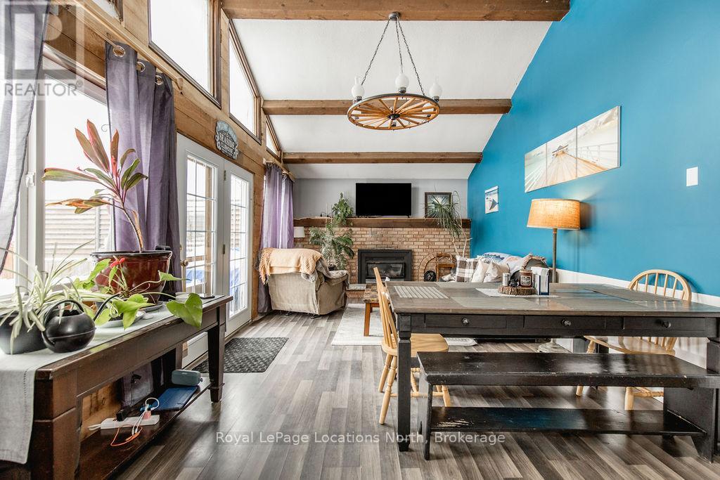 Welcome to this ideally located raised bungalow in central Wasaga Beach, perfectly positioned along the scenic Nottawasaga River. Enjoy direct access to boating, kayaking, paddleboarding, fishing, and year-round waterfront enjoyment right from your backyard.This 2+2 bedroom, 2-bathroom home offers incredible river views and a walkout basement that opens to tiered decks designed for outdoor living, entertaining, and soaking in the peaceful waterfront setting. Inside, you'll find a bright, ranch bungalow layout complemented by two cozy gas fireplaces that add warmth and comfort to both levels. Just a short walk to the beach, restaurants, and public transit, this property combines lifestyle convenience with natural beauty. A double car garage and lots of parking provide space for family and guests. Fenced in dog kennel and gated front entrance. Additional features include: brand new owned hot water heater, updated electrical, new windows and insulation upgrades, dog run with inside dog house/kennel and RV hookup. Move in and enjoy as is, or add your own finishing touches to transform this property into the riverfront oasis you've been dreaming of. (id:4069)