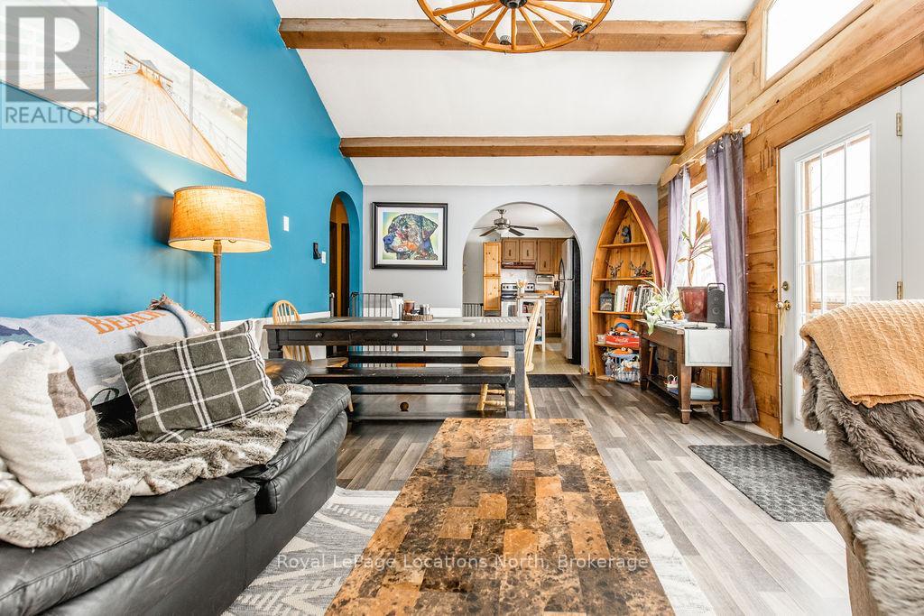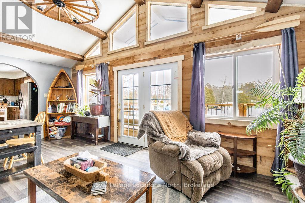 Welcome to this ideally located raised bungalow in central Wasaga Beach, perfectly positioned along the scenic Nottawasaga River. Enjoy direct access to boating, kayaking, paddleboarding, fishing, and year-round waterfront enjoyment right from your backyard. This 3+1 bedroom, 2-bathroom home offers incredible river views and a walkout basement that opens to tiered decks designed for outdoor living, entertaining, and soaking in the peaceful waterfront setting. Inside, you'll find a bright, ranch bungalow layout complemented by two cozy gas fireplaces that add warmth and comfort to both levels. Just a short walk to the beach, restaurants, and public transit, this property combines lifestyle convenience with natural beauty. A double car garage and lots of parking provide space for family and guests. Fenced in dog kennel and gated front entrance. Additional features include: brand new owned hot water heater, updated electrical, new windows and insulation upgrades, dog run with inside dog house/kennel and RV hookup. Move in and enjoy as is, or add your own finishing touches to transform this property into the riverfront oasis you've been dreaming of. (id:4069)
