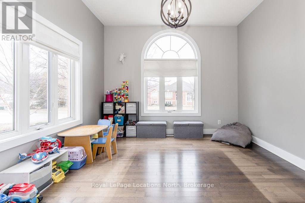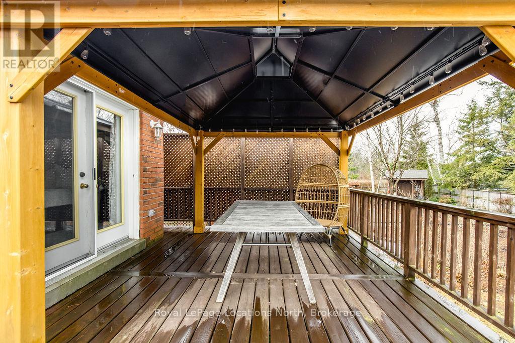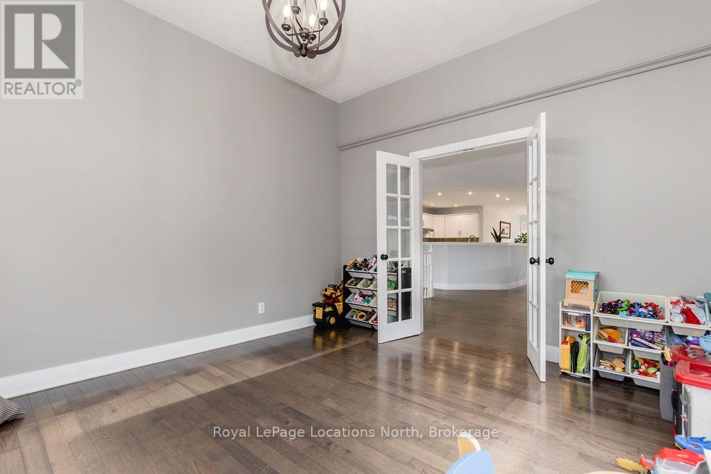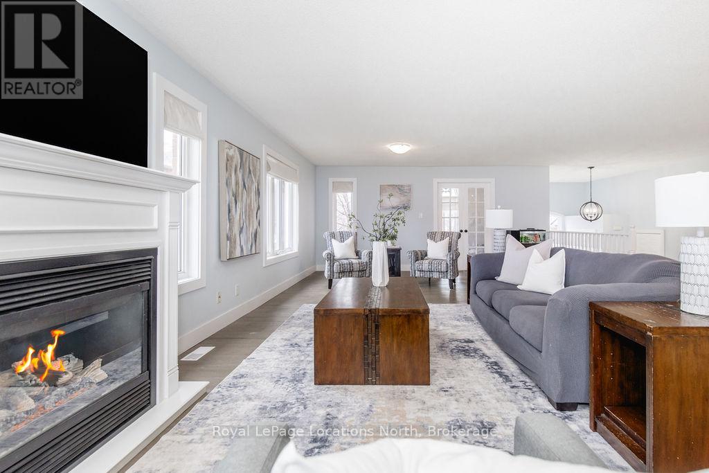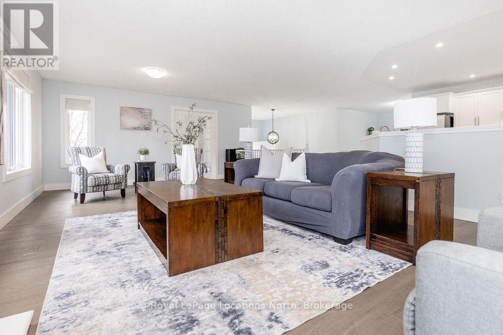 Set on a beautifully mature lot, this property offers a private, fully fenced backyard surrounded by trees, creating the kind of quiet, tucked-away outdoor space that's perfect for kids, pets, and summer evenings on the deck. As you walk into the home, you're welcomed by a spacious foyer with convenient inside entry from the garage, leading into a bright, open-concept main floor. Large windows fill the space with natural light, highlighting the updated flooring and creating an easy flow between the living, dining, and kitchen areas. The kitchen offers great counter space perfect for cooking, with access to the 45 ft back deck spanning the back of the house, perfect for entertaining and barbequing. An additional room on the main floor with French doors offers flexibility as a dining room, office, or playroom.The main level offers 3 bedrooms, including a generous primary suite with a walk-in closet, private ensuite, and its own walkout to the deck. Updated finishes throughout, including new carpet in the bedrooms and stairs, add to the move-in-ready feel. With a total of 3 bathrooms, the layout is designed to comfortably accommodate family living. Downstairs, the fully finished basement offers incredible additional space, including two more bedrooms, a separate office, and a large recreation area with room for a pool table. A wet bar and gas fireplace make this the perfect setup for entertaining or hosting guests, while still offering plenty of functional living space for a growing family. Additional highlights include gas fireplaces on both levels, new front doors, interlock driveway and walkway, central air, central vacuum, owned hot water tank, water softener. Walk to school, walking trails, shopping and beach. 7 min drive to Collingwood. (id:4069)