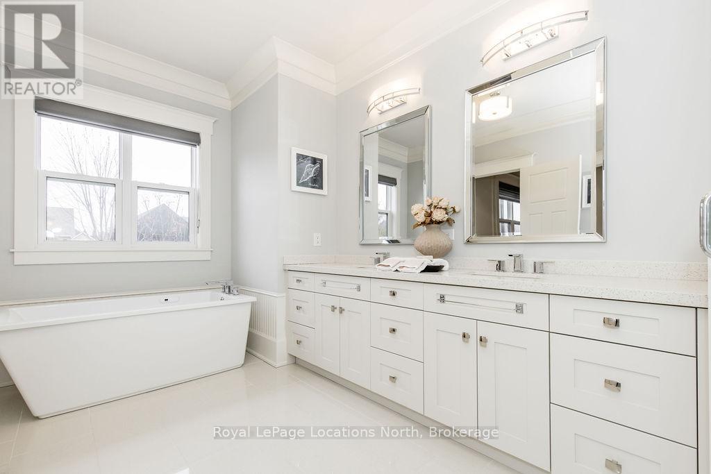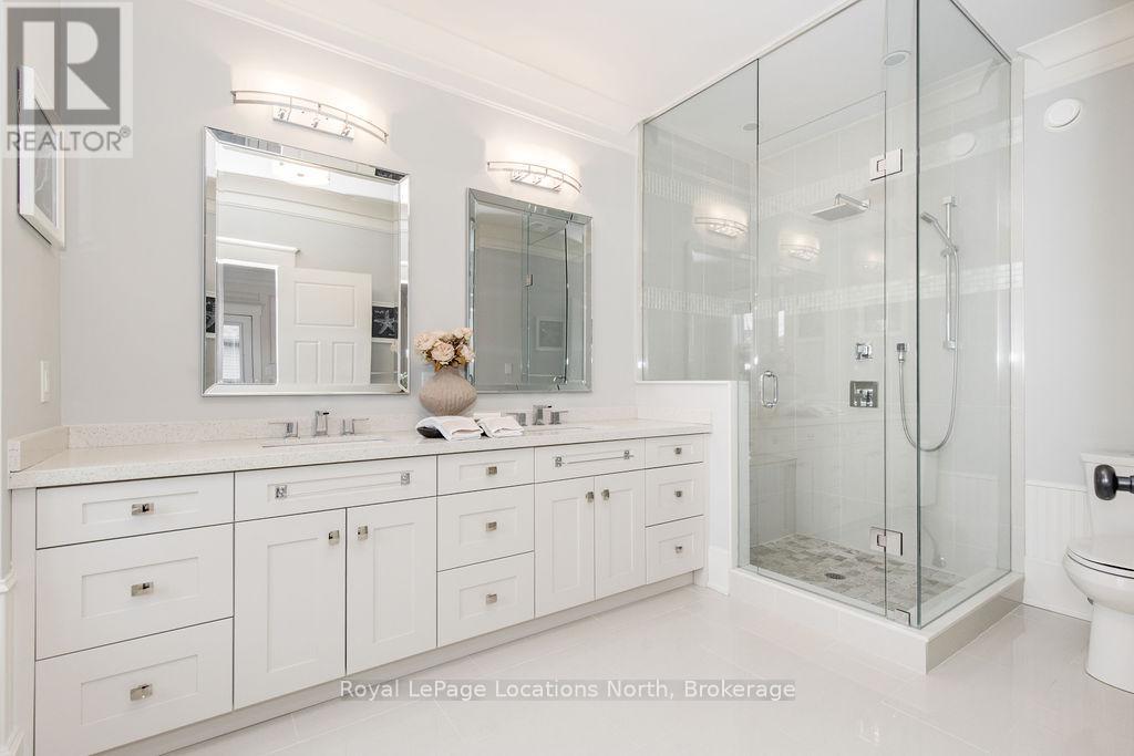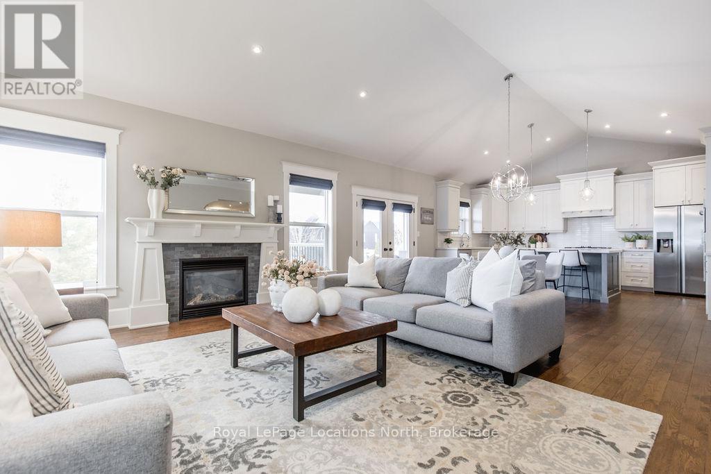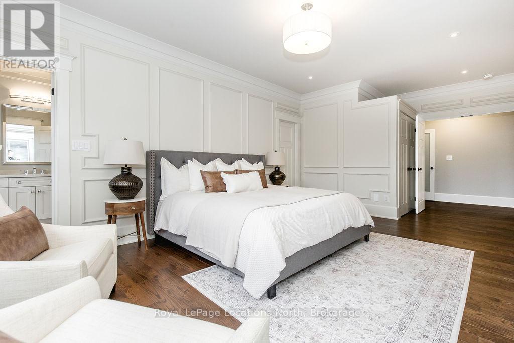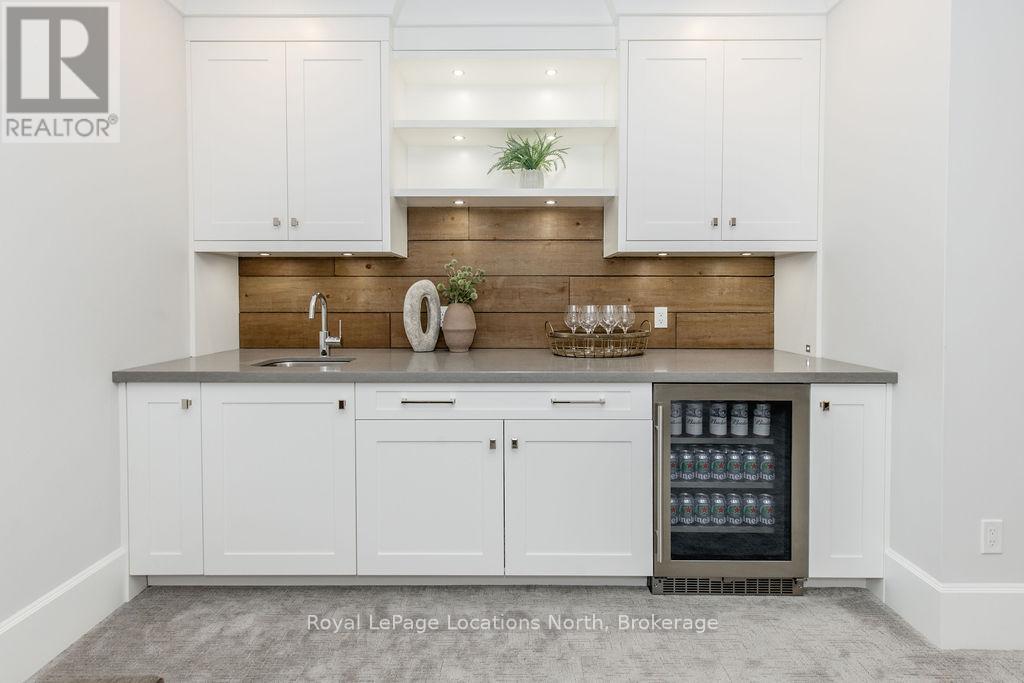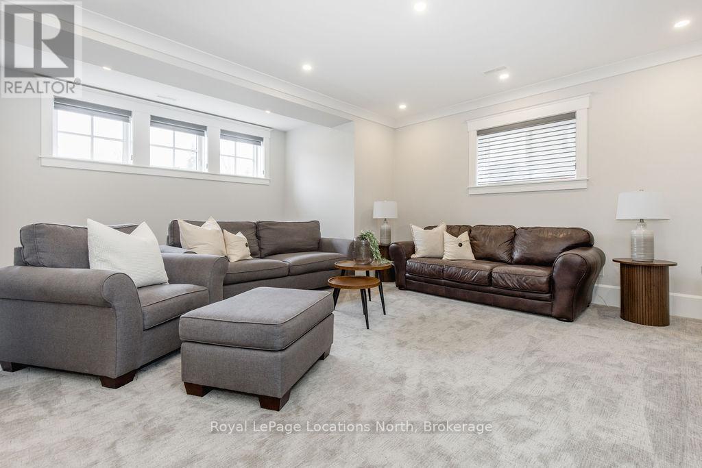 Located in a sought-after estate neighbourhood, this fully upgraded bungalow offers over 4,500 sq ft of finished living space with 3+2 bedrooms, a private 66 x 166 treed backyard & in-law suite potential. Mature trees have been brought in to create a rare, fully enclosed outdoor setting with exceptional privacy. Exterior features include a covered back porch, extended tiered deck, gas BBQ hookup, above-ground pool & a fully fenced yard. Large front porch with sun exposure.A grand front entry opens to a spacious foyer with walk-in closet, leading into a bright open-concept layout with vaulted ceilings & oversized windows. Rich hardwood, stunning crown mouldings including above windows, feature walls & oversized 9" baseboards carry throughout, complemented by upgraded hardware & refined finishes. The family room features a vaulted ceiling & gas fireplace, open to the kitchen and dining areas.The kitchen is designed for both function and entertaining with quartz countertops, an oversized island with seating, gas range, built-in double ovens, Samsung fridge, pendant lighting & pot lights. A butler's pantry with wine fridge and wet bar, along with a separate walk-in pantry, adds additional prep space & storage. Formal dining room offers a dedicated space for hosting. Main floor laundry with quartz counters & garage access. The lower level is finished to the same high standard, featuring 9 ft ceilings, extensive pot lighting, crown moulding, spray foam walls and headers & soundproofed construction with Roxul insulation. Includes 2 bedrooms, hidden playroom/workshop & a large entertainment area with custom bar, wet bar, & feature wall, ideal for games or hosting. A separate rec room provides flexibility for additional living space, sixth bedroom, gym, or future kitchen, with layout potential for a 2-bedroom in-law suite or multi-generational living. Amazing schools, offering french, catholic & public schools, plus close walk to the high school. (id:4069)