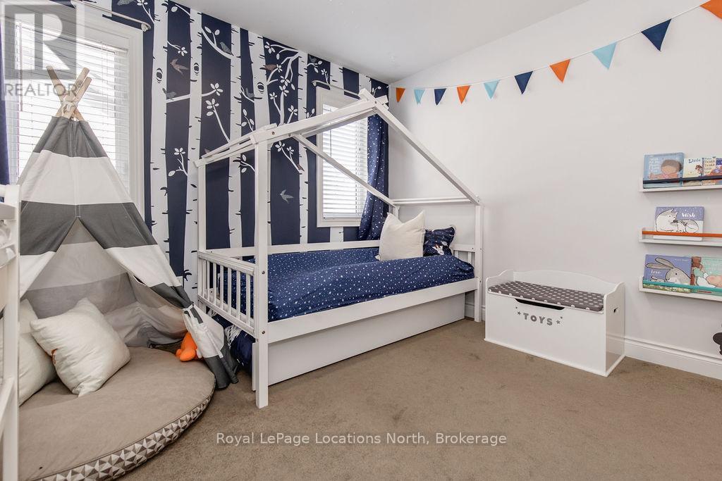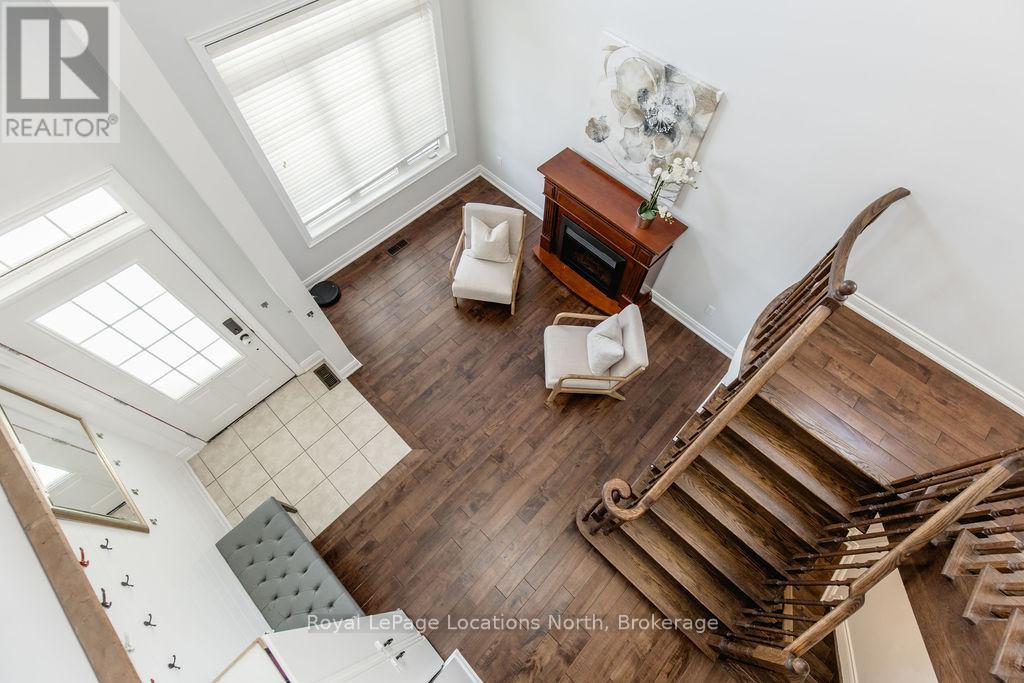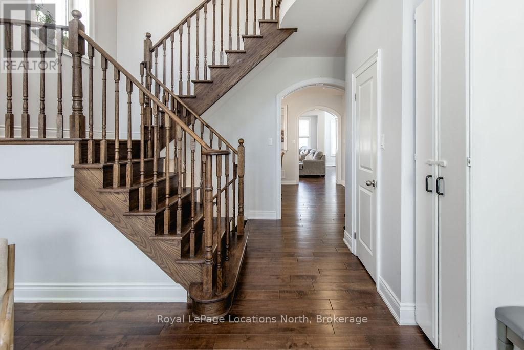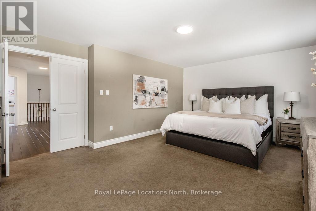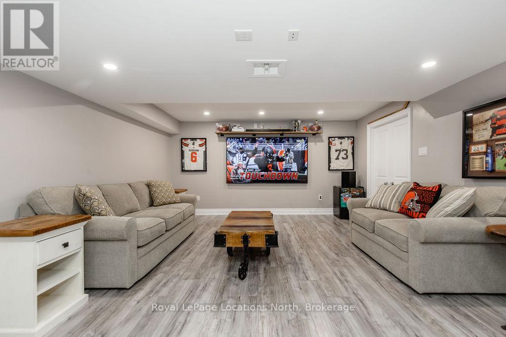 Welcome to this well-maintained 4 bedroom, 5 bathroom, 3,000+ sqft home located on a quiet cul-de-sac in a sought-after Wasaga Beach neighbourhood, just 5 minutes to the beach and Marlwood Golf Course, walking distance to the library, and upcoming K-12 School and community hub as well as easy access to Barrie. The main floor features a grand 18-ft ceiling entry with a sitting area and staircase to the upper balcony, a formal dining room, and an open concept living room and kitchen. The kitchen offers granite countertops, updated cabinet doors, a new gas stove and hood, and a great sized island perfect for hosting with plenty of space for cooking and baking. Engineered hardwood flooring runs throughout the main level, complemented by upgraded baseboards, upgraded mouldings, and fresh paint (2022), giving the home an upscale feel. Inside entry to a double car garage and a convenient powder room complete this level.Upstairs offers 3 large bedrooms, including an oversized primary suite with walk-in closet and ensuite featuring a glass shower, double sinks, and a soaker tub. A second bedroom also includes its own ensuite and walk-in closet, plus an additional 4-piece bathroom. With spacious bedrooms and two ensuites, this is a rare find for growing families.The finished basement adds a 4th bedroom, full bathroom with walk-in shower, and the perfect cozy rec room or man cave, also ideal as a theatre room. An unfinished area with plumbing rough-in offers potential for a kitchenette or in-law suite. Major updates include furnace (2023) and A/C (2023) with transferable 10-year parts and labour warranty. Additional features include 200 amp service, wired security system, gas BBQ line, garage door openers, and a fully fenced oversized yard. (id:4069)