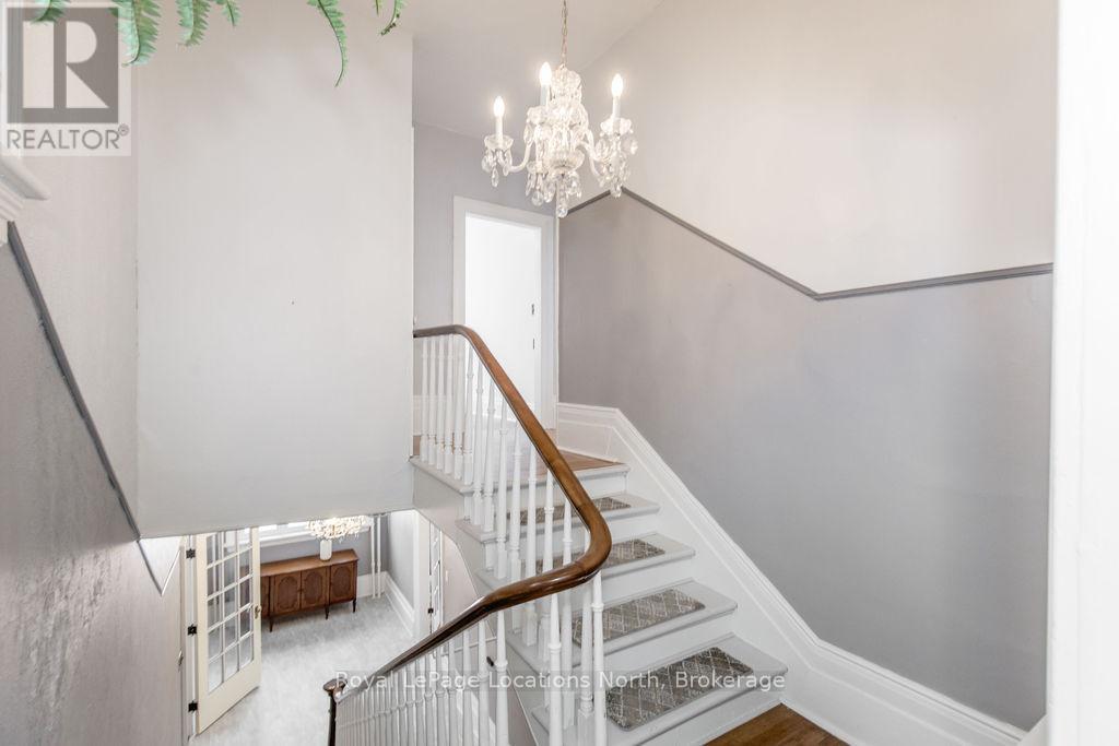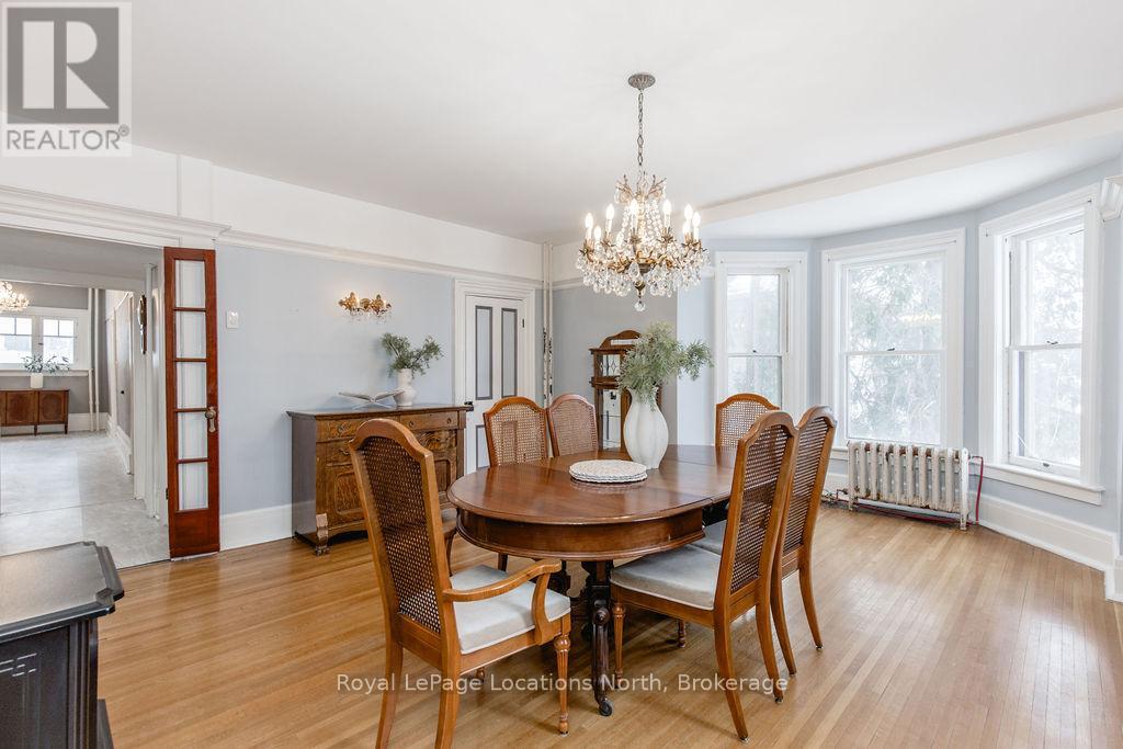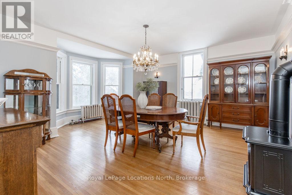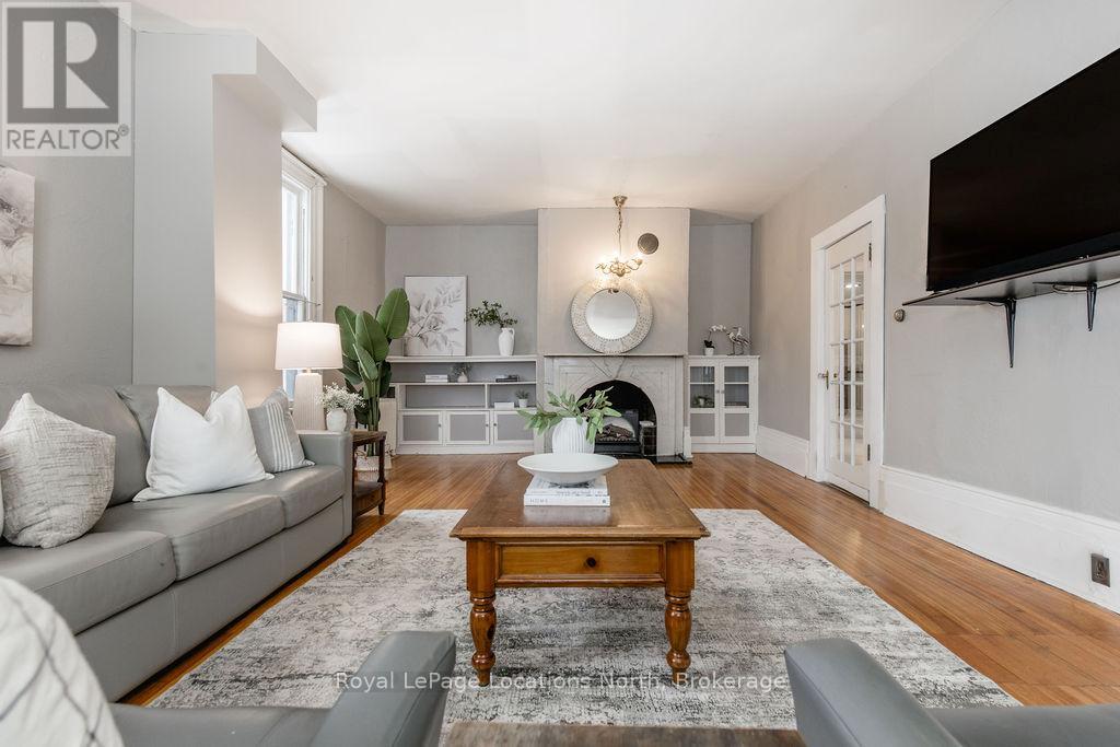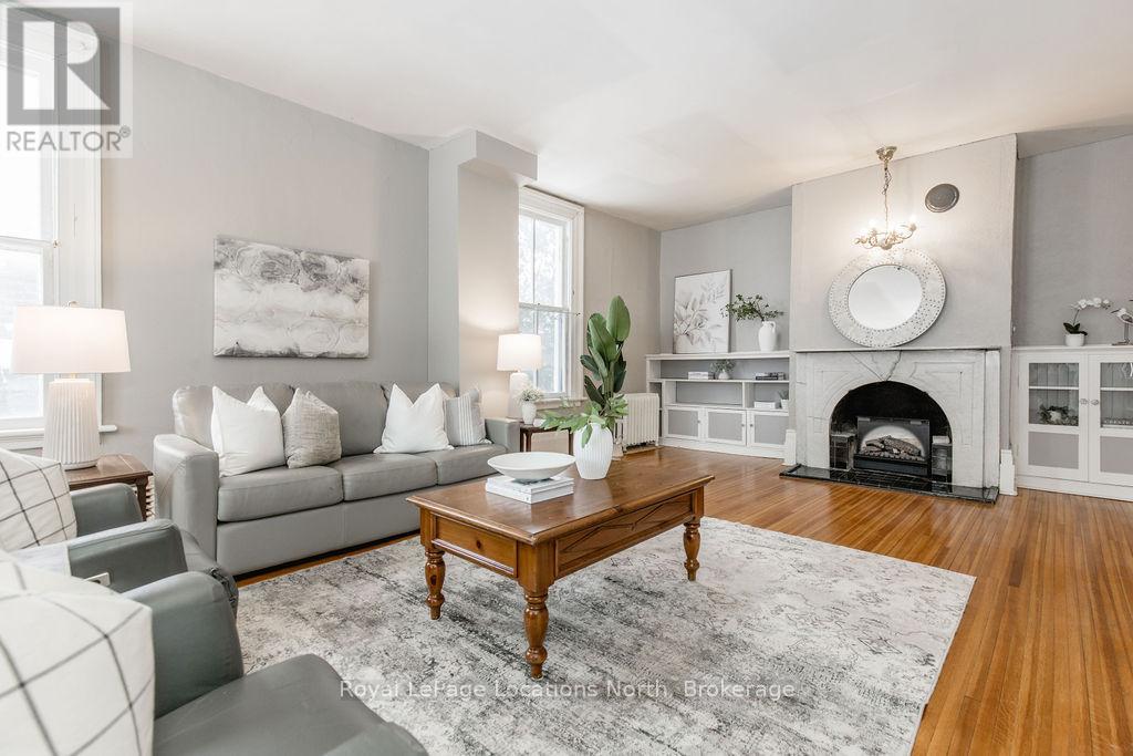 Welcome to 29 Tecumseth Street in Orillia, a distinctive 2 1/2-storey century home where history meets modern updates. Originally built in 1900 just across the street and carefully relocated to its present setting in 1911, this 5-bedroom, 4-bathroom residence blends classic charm with thoughtful improvements. With minimal changes, it could easily be converted back to a 6-bedroom home. Step inside through the welcoming side foyer and you're immediately greeted by warmth and character. The main hallway features the classic original staircase, a timeless focal point.The spacious living room offers a bay window, built-ins, and a marble fireplace surround, while the large formal dining room features a plate rail and electric fireplace, ideal for hosting family gatherings and celebrations. The oversized powder room adds convenience, and the kitchen includes updated appliances, original baker's table and cabinetry, and access to the butler's staircase. A bright 3-season room provides access to the backyard and a separate basement entrance. Upstairs, the second level offers two separate wings encompassing four bedrooms,including a primary suite with a walk-in dressing room thoughtfully converted from a former bedroom. A 4-piece main bath with tiled shower and convenient laundry closet, along with an additional 2-piece bath, complete the level. The third floor features a fifth bedroom with its own ensuite and classic clawfoot tub, plus attic storage. The full unfinished basement offers a rec room area, additional laundry hookups, abundant storage, and a walk-up to the sunroom. Featuring many original architectural details alongside modern mechanical updates, including a boiler (2022) and hot water heater (2026), this home offers the perfect balance of character and functionality. (id:4069)