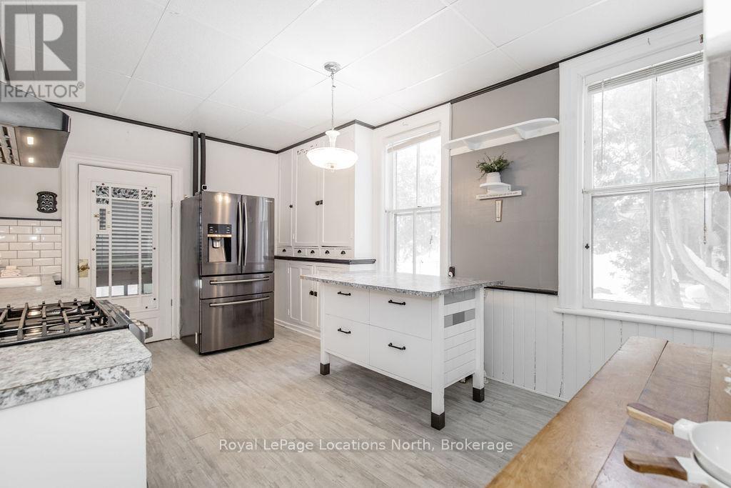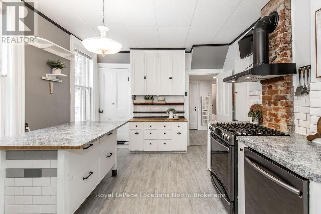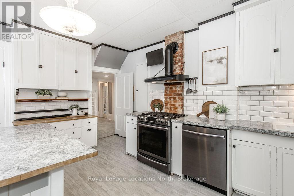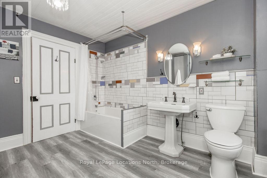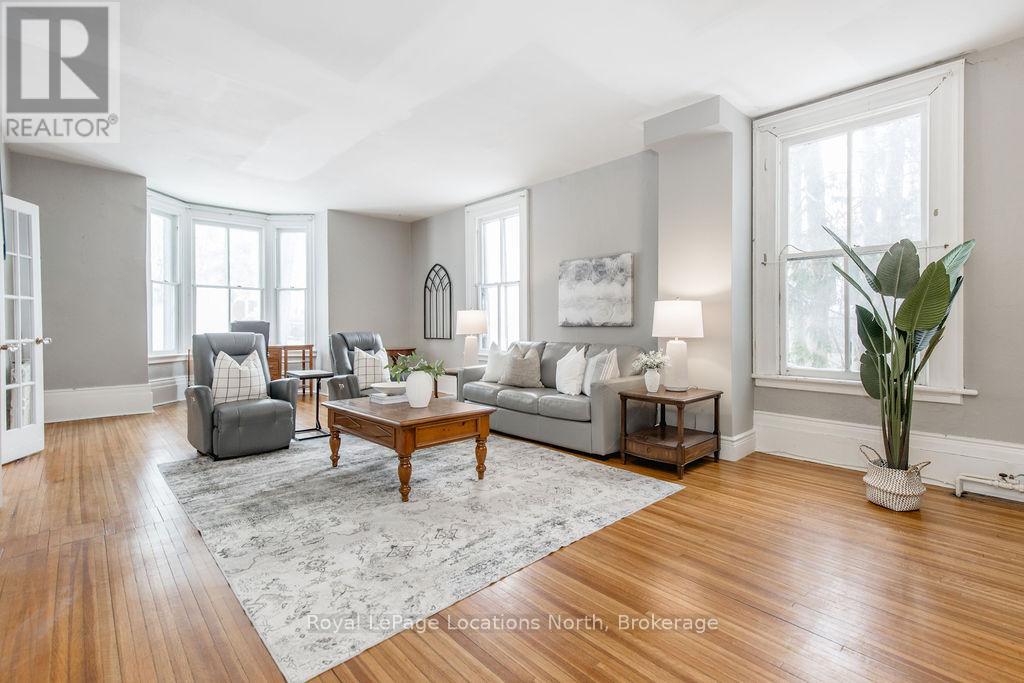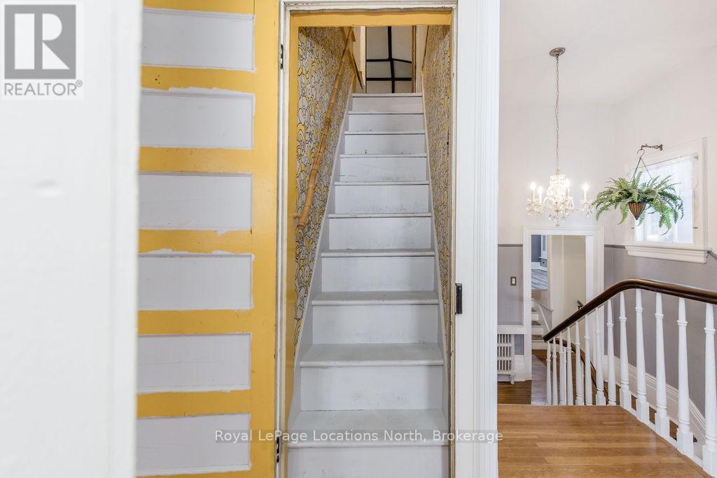 Welcome to 29 Tecumseth Street in Orillia, a distinctive 2 1/2-storey century home where history meets modern updates. Originally built in 1900 just across the street and carefully relocated to its present setting in 1911, this 5-bedroom, 4-bathroom residence blends classic charm with thoughtful improvements. With minimal changes, it could easily be converted back to a 6-bedroom home. Step inside through the welcoming side foyer and you're immediately greeted by warmth and character. The main hallway features the classic original staircase, a timeless focal point.The spacious living room offers a bay window, built-ins, and a marble fireplace surround, while the large formal dining room features a plate rail and electric fireplace, ideal for hosting family gatherings and celebrations. The oversized powder room adds convenience, and the kitchen includes updated appliances, original baker's table and cabinetry, and access to the butler's staircase. A bright 3-season room provides access to the backyard and a separate basement entrance. Upstairs, the second level offers two separate wings encompassing four bedrooms,including a primary suite with a walk-in dressing room thoughtfully converted from a former bedroom. A 4-piece main bath with tiled shower and convenient laundry closet, along with an additional 2-piece bath, complete the level. The third floor features a fifth bedroom with its own ensuite and classic clawfoot tub, plus attic storage. The full unfinished basement offers a rec room area, additional laundry hookups, abundant storage, and a walk-up to the sunroom. Featuring many original architectural details alongside modern mechanical updates, including a boiler (2022) and hot water heater (2026), this home offers the perfect balance of character and functionality. (id:4069)
